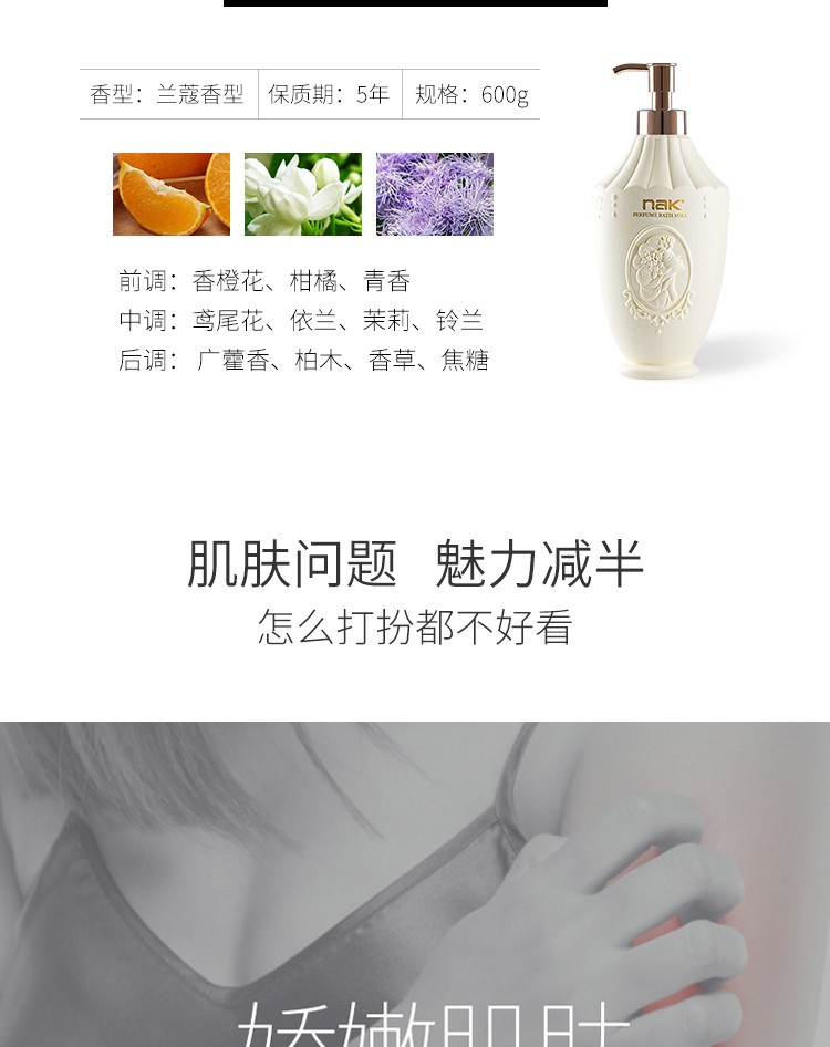 NAK 香氛清爽沐浴淋浴露 奢享香水滋润沐浴乳(甜蜜诱惑)600g