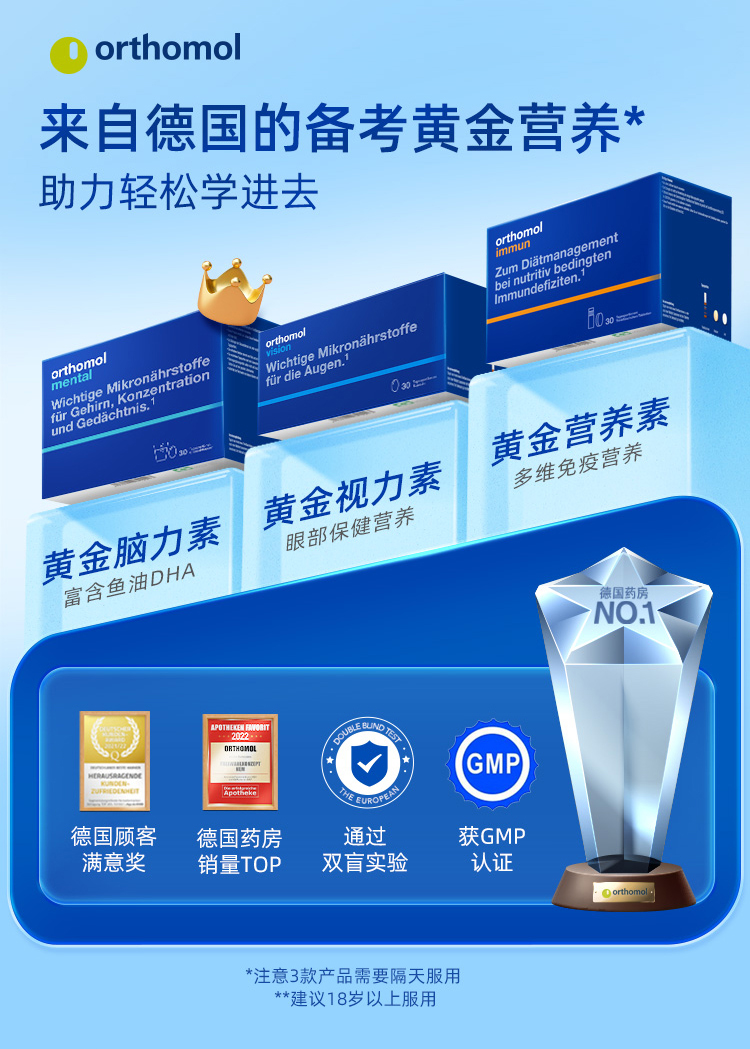 【自营】德国orthomol奥适宝深海鱼油DHA磷脂酰丝氨酸青少年补脑