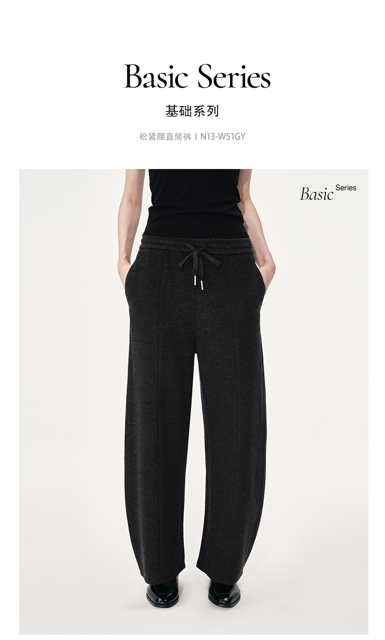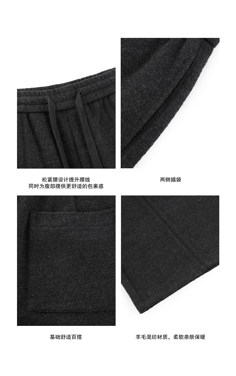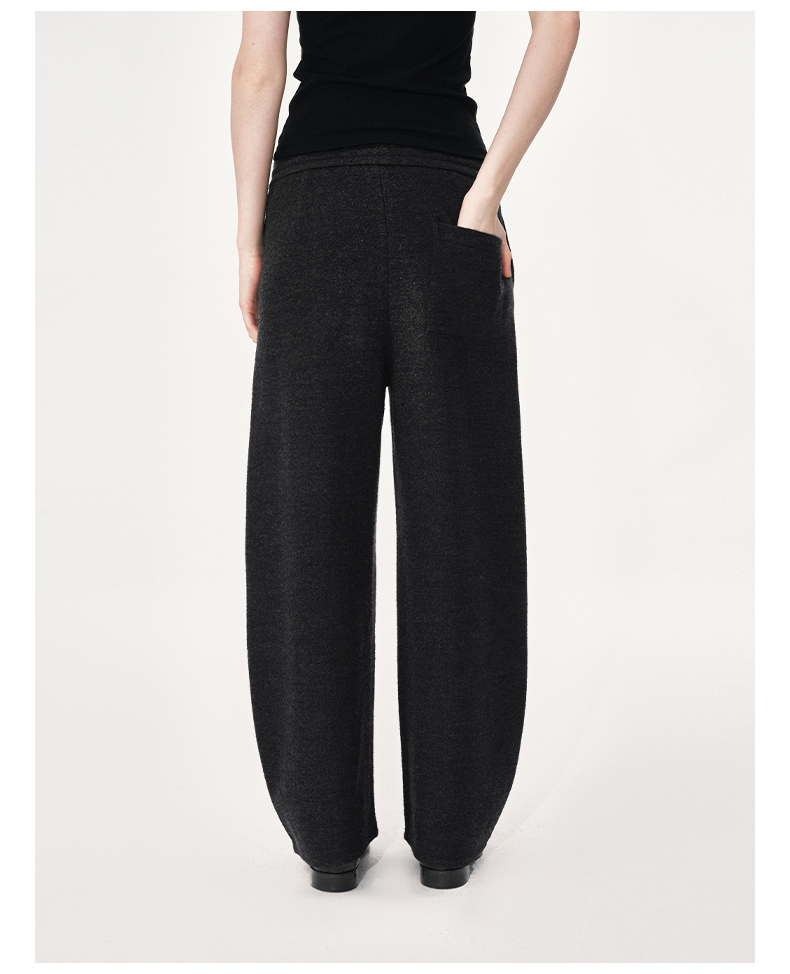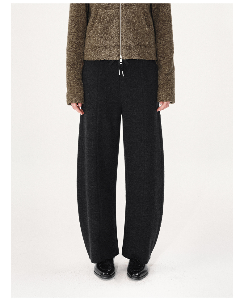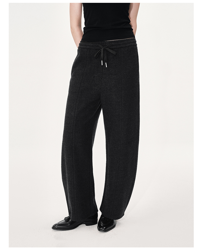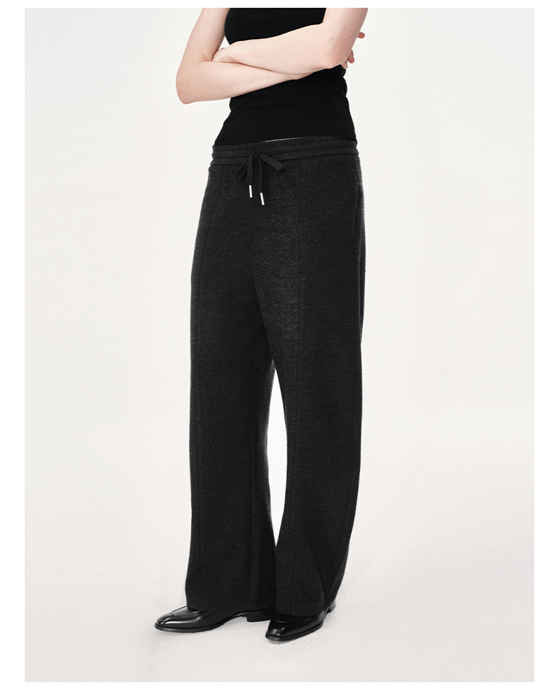 NUTH深灰色羊毛混纺松紧腰抽绳直筒休闲裤女