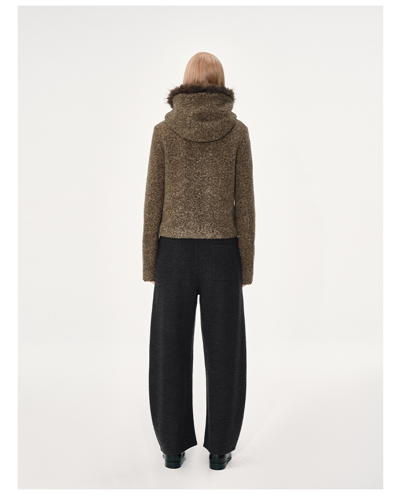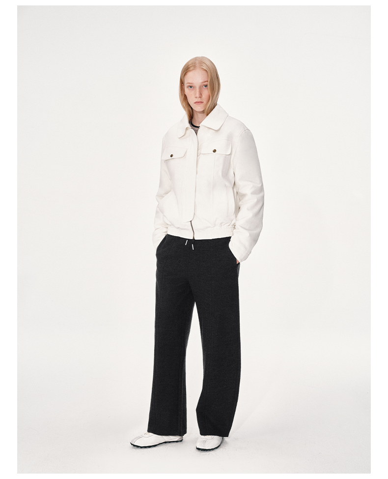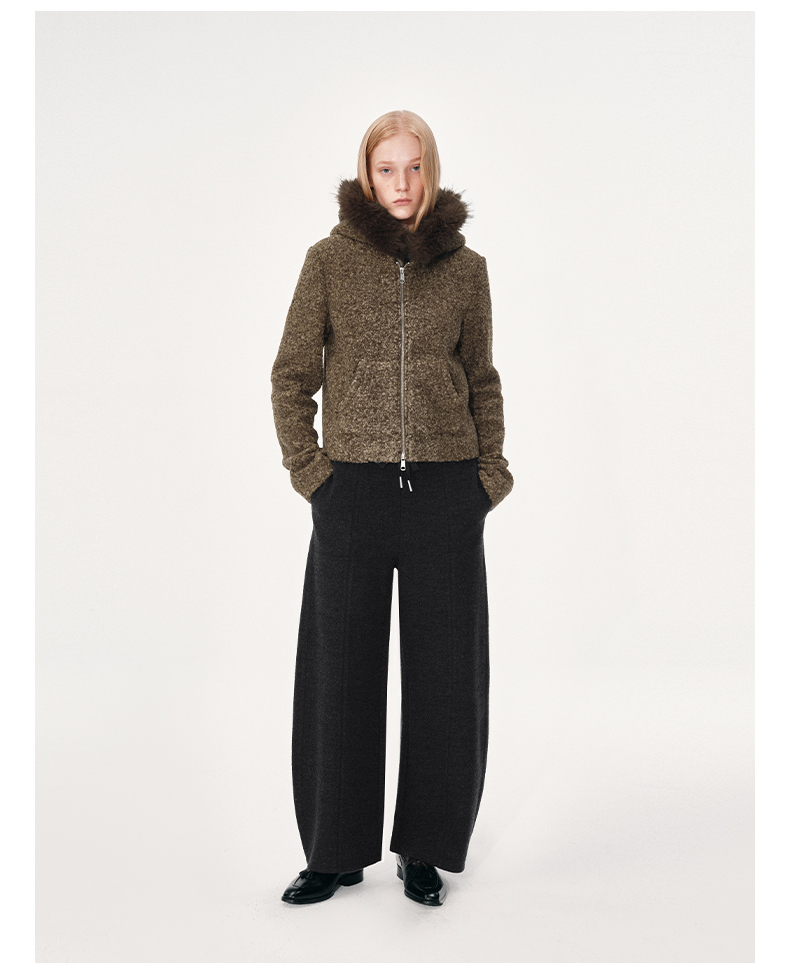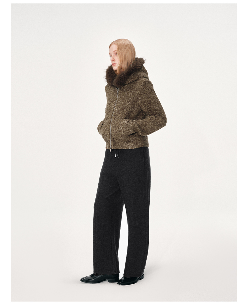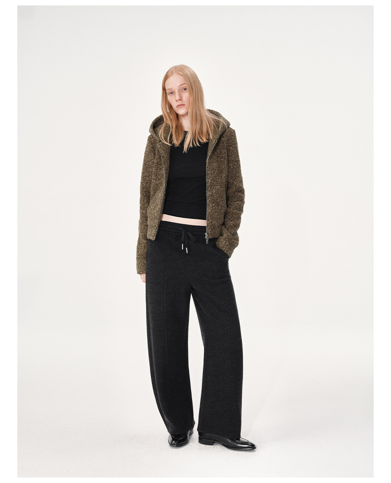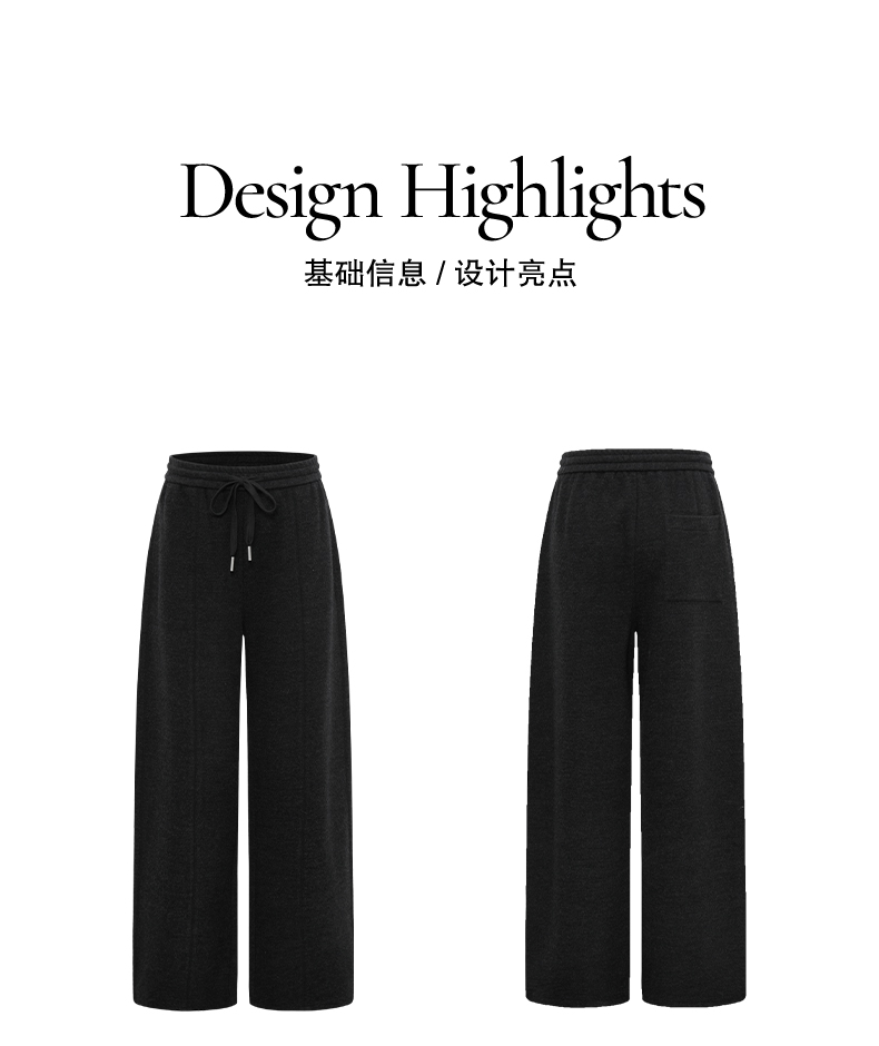 NUTH深灰色羊毛混纺松紧腰抽绳直筒休闲裤女
