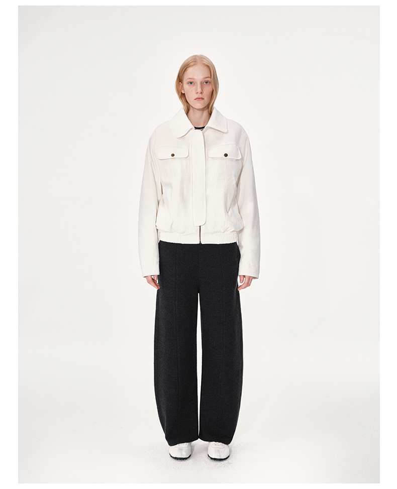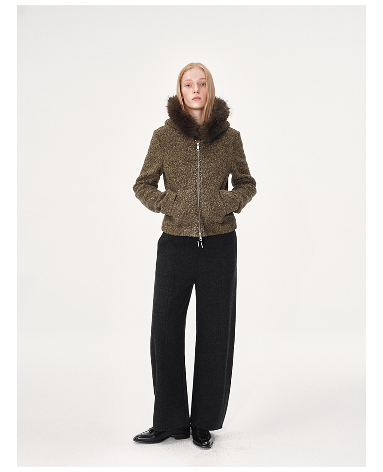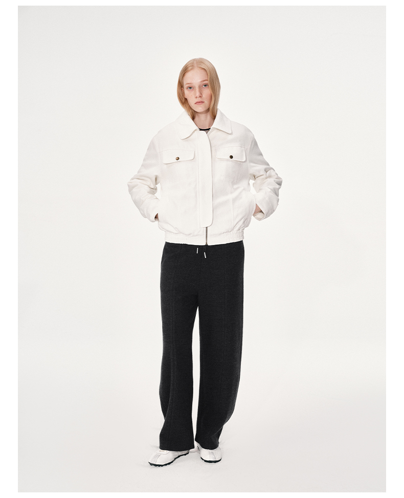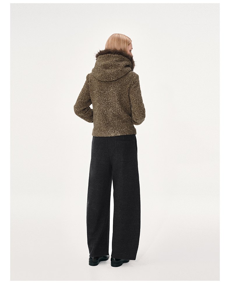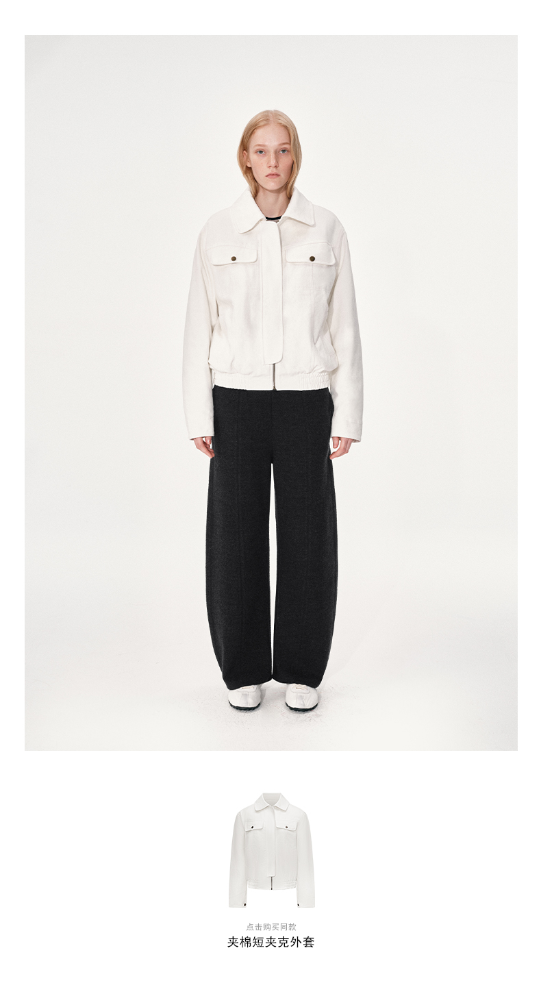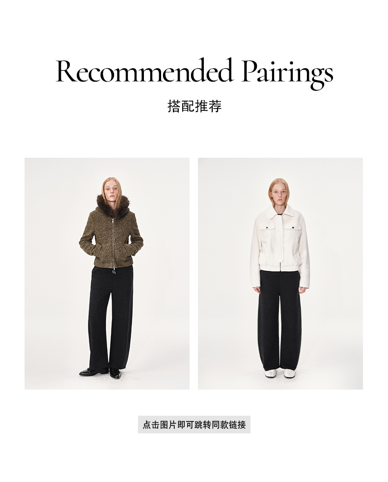 NUTH深灰色羊毛混纺松紧腰抽绳直筒休闲裤女