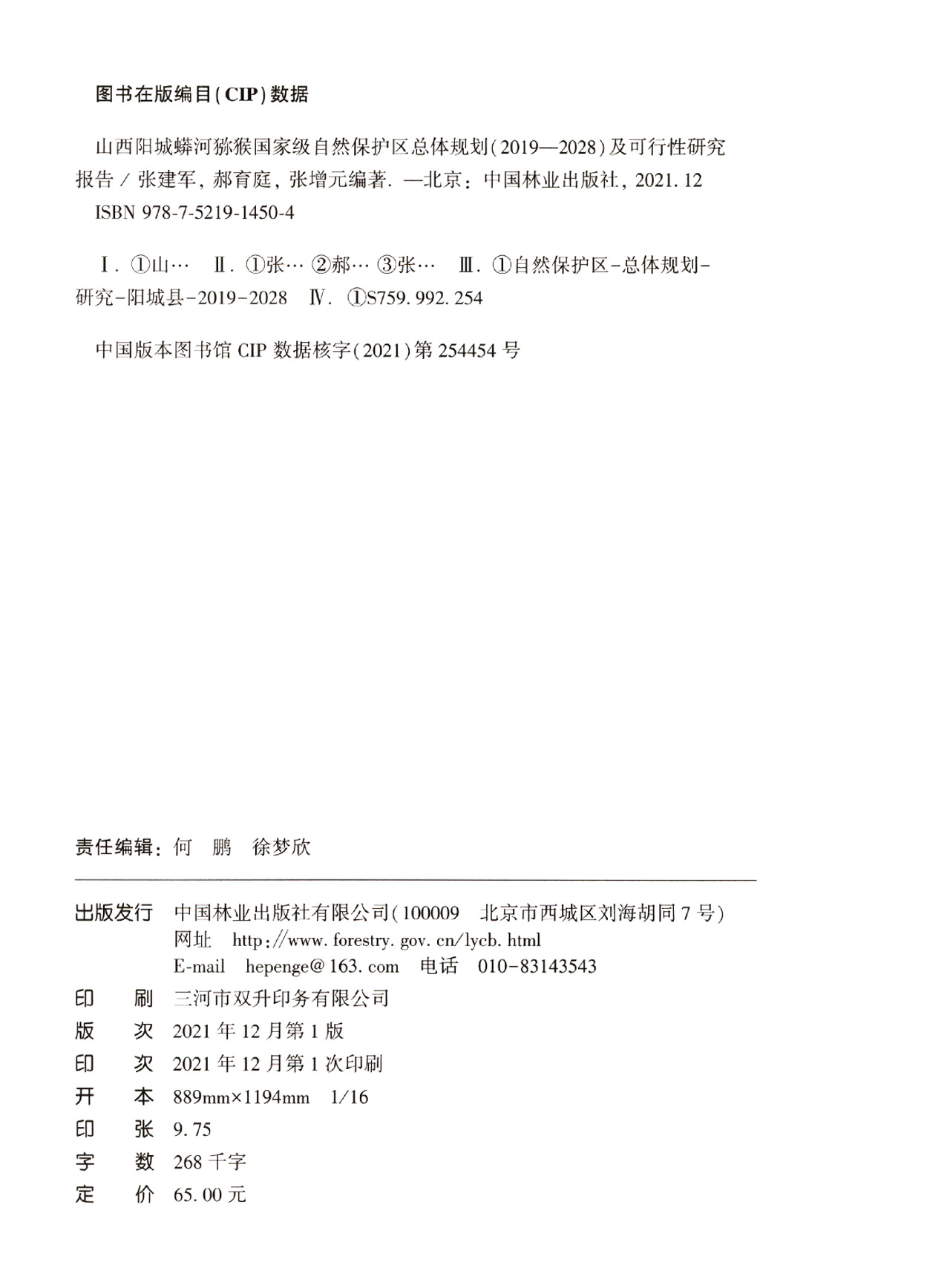 山西阳城蟒河猕猴国家级自然保护区总体规划 2019-2028 及可行性研究报告 张建军//郝育庭//张增元 1450 中国林业出版社