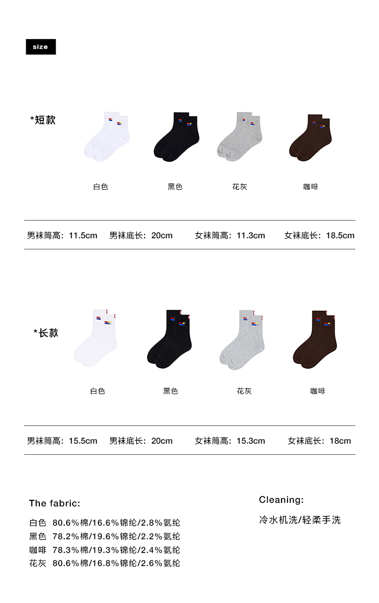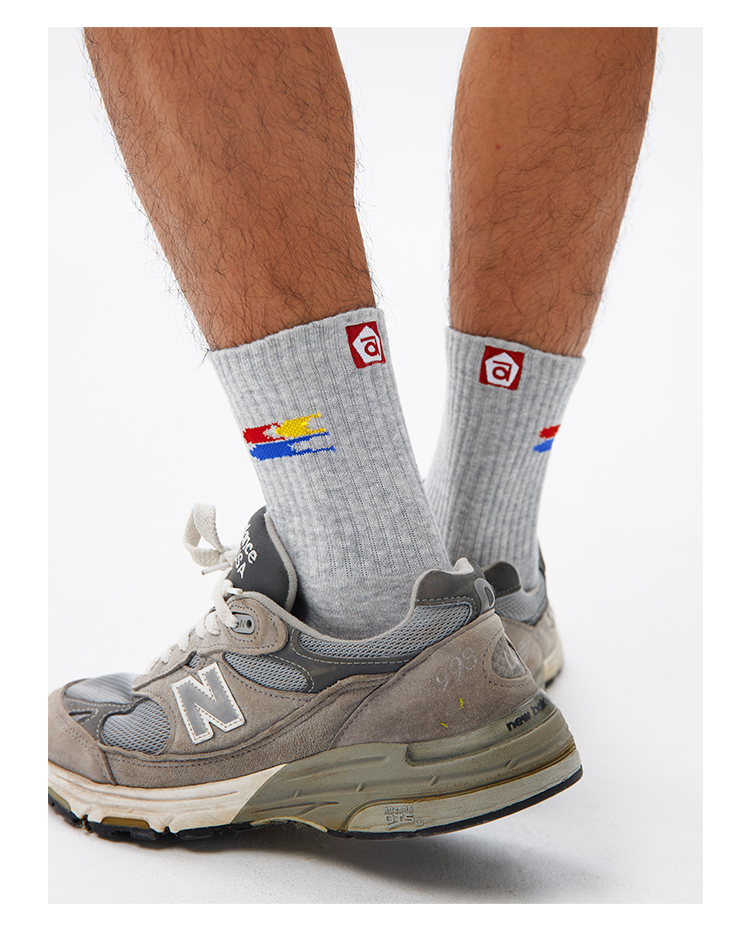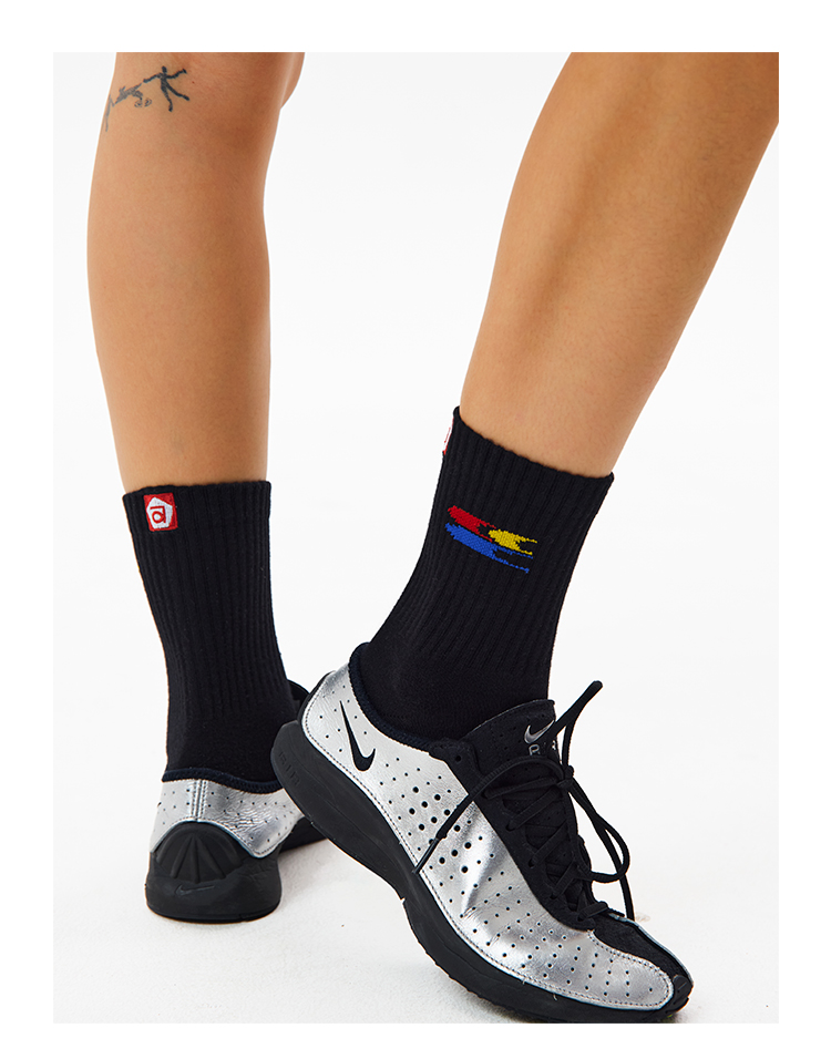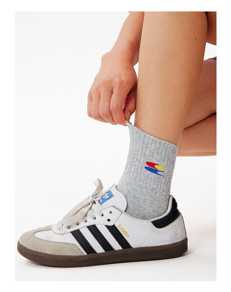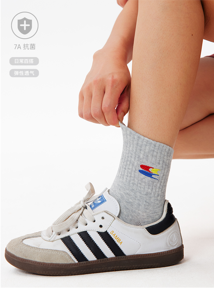 CryingCenter 7A抗菌三色logo运动短袜中筒袜日常百搭 弹性透气