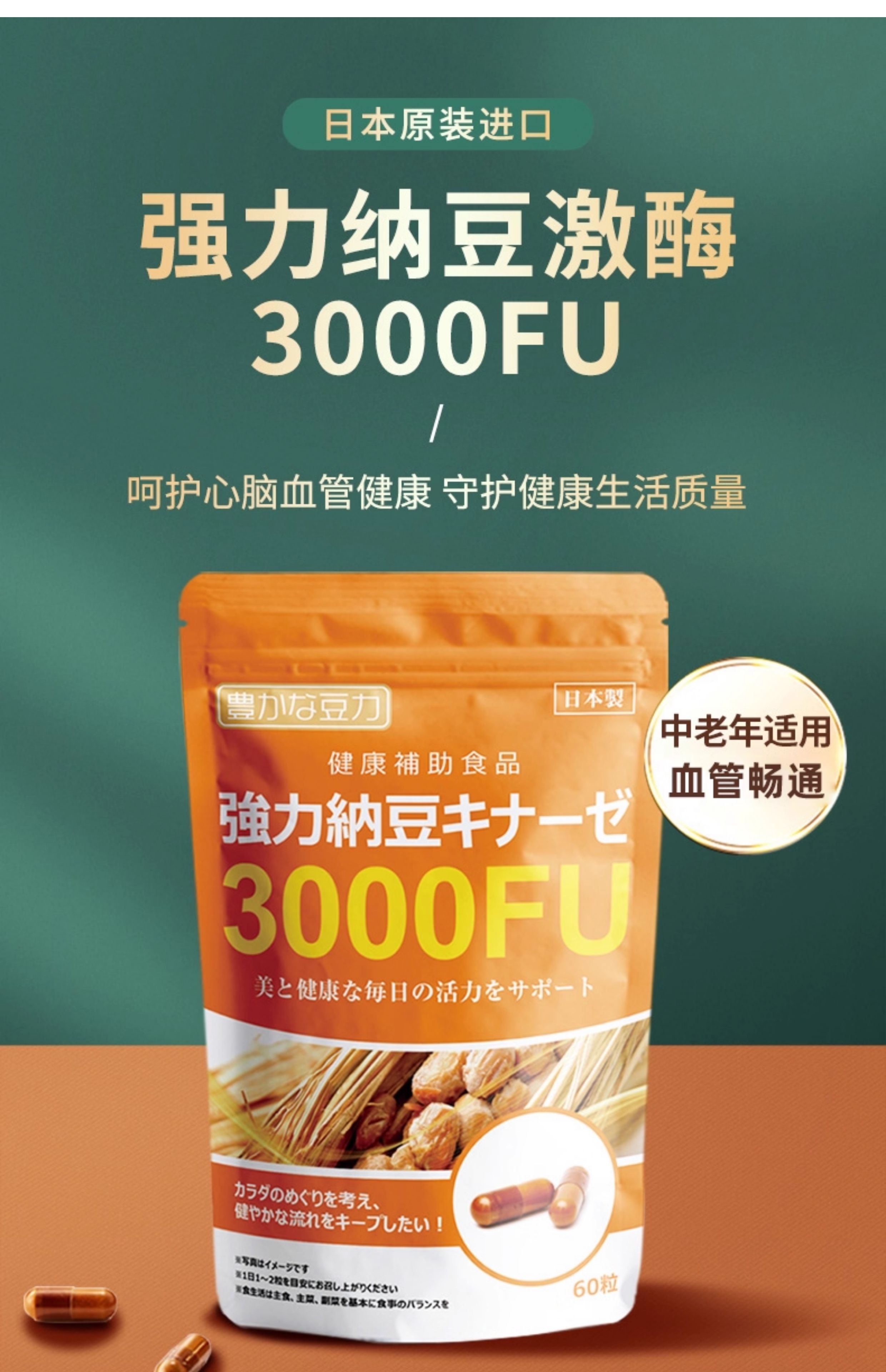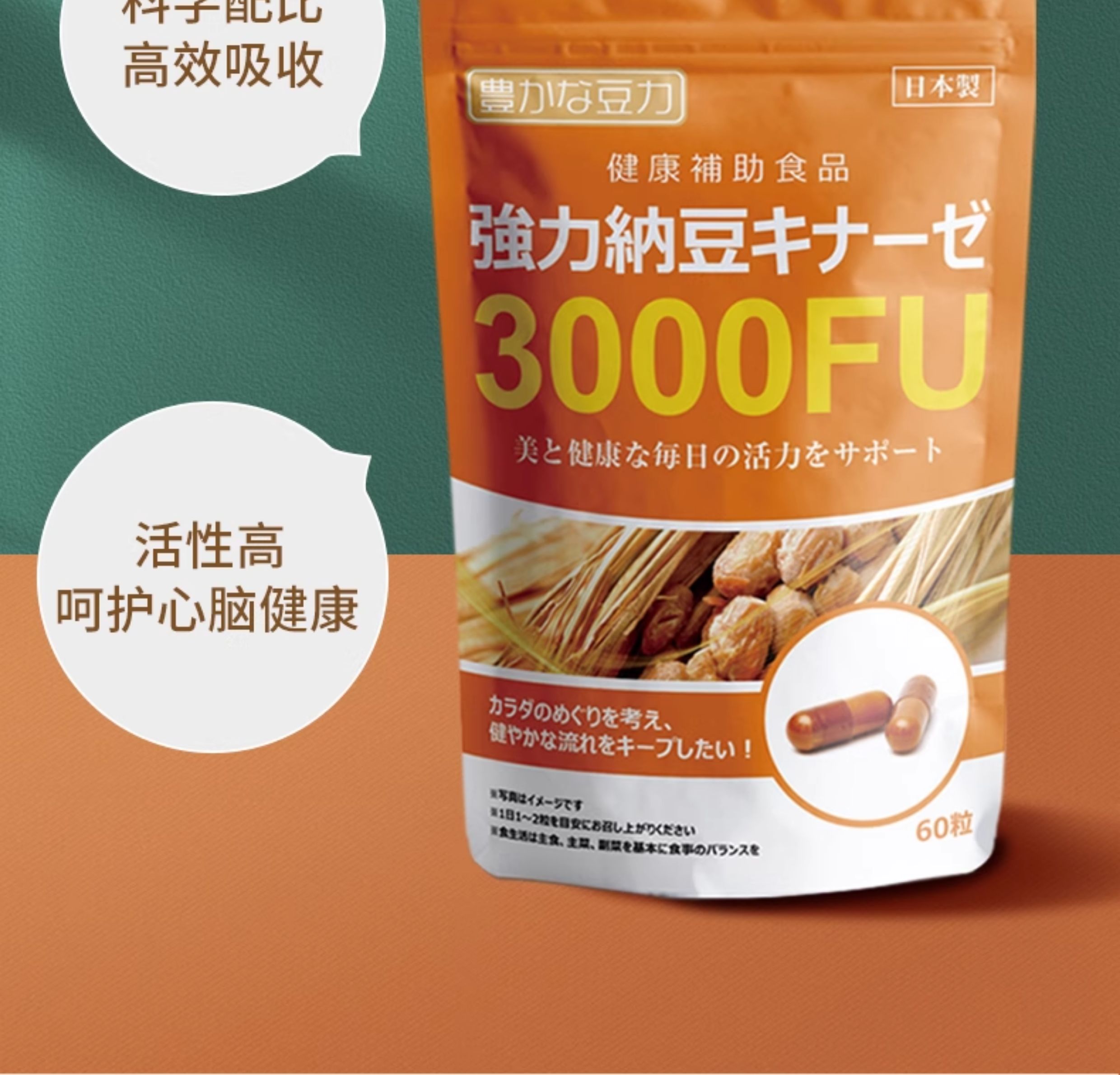nattokinaze 丰富的豆力 3000FU强力纳豆 60粒/袋