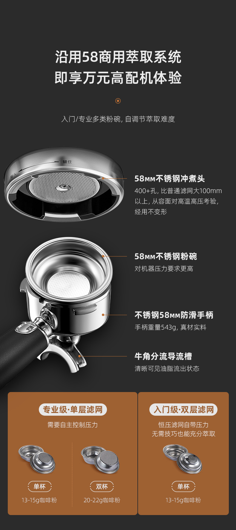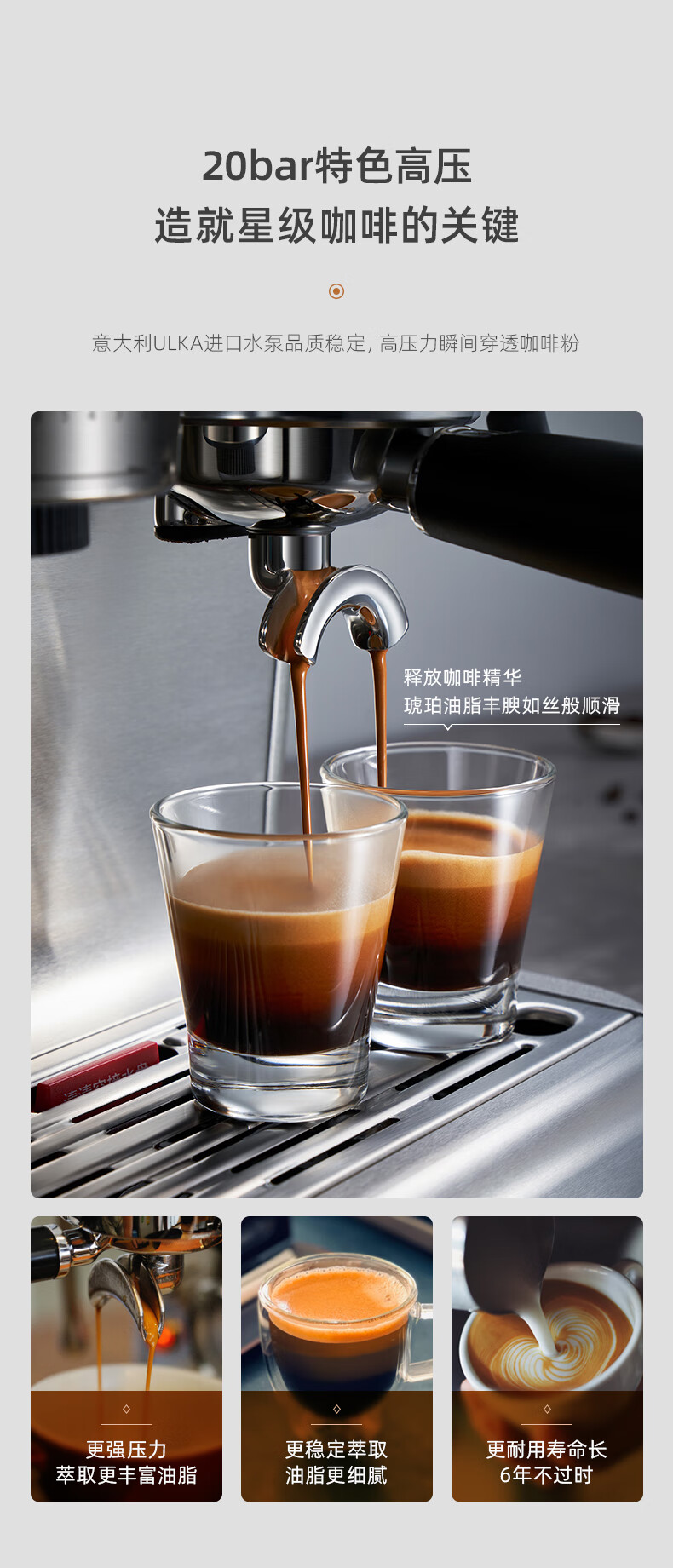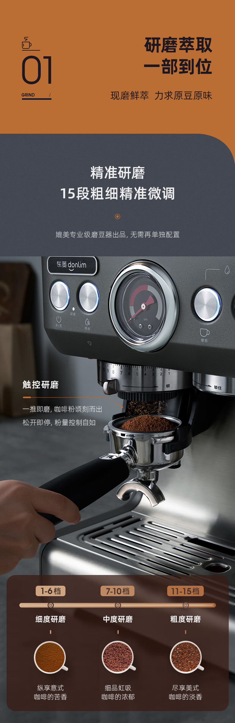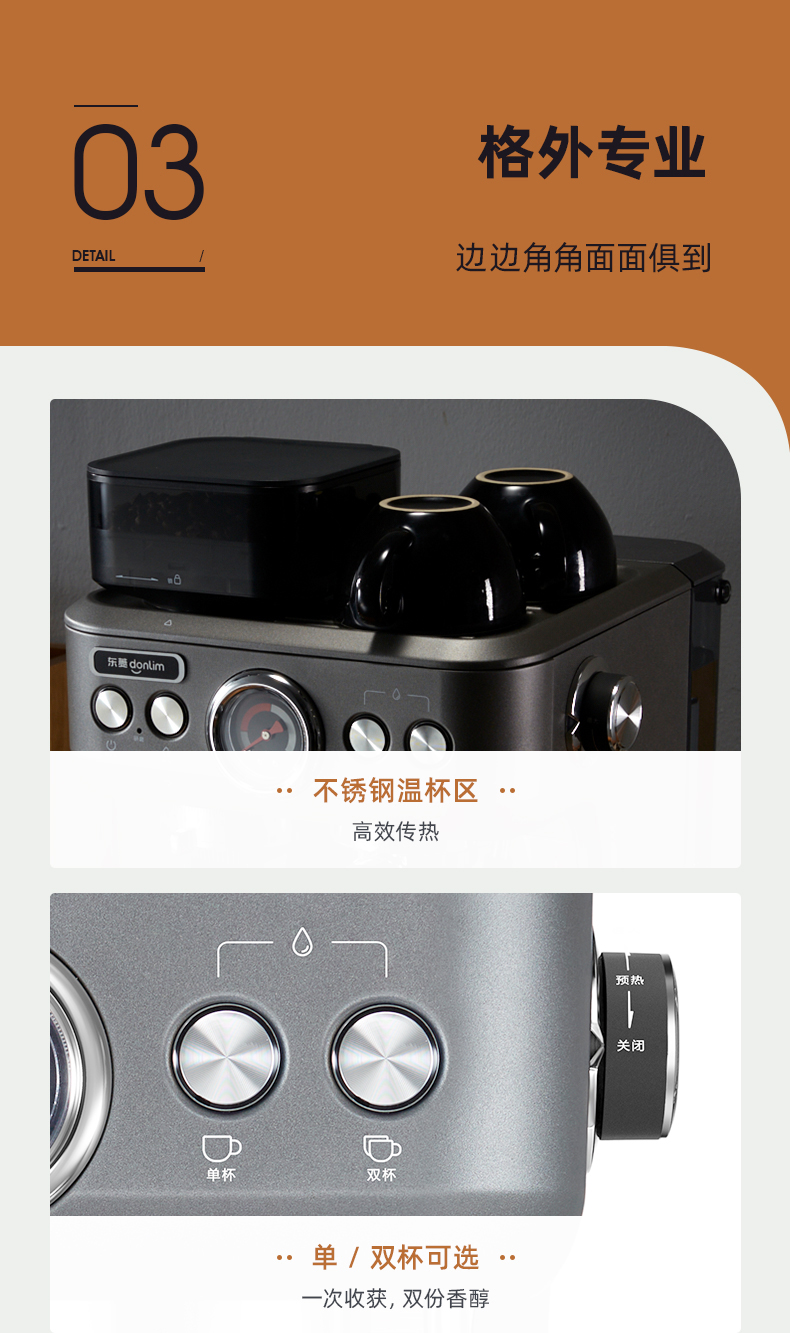 东菱(Donlim) 咖啡机 咖啡机家用 意式半自动 研磨一体机 20Bar高压萃取 蒸汽打奶泡 DL-5700P(钛金灰) 心选到家