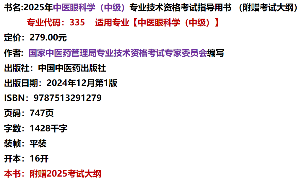 2025年中医眼科学(中级)专业技术资格考试指导用书 国家中医药管理局专业技术资格考试专家委员会编写 中国中医药出版社