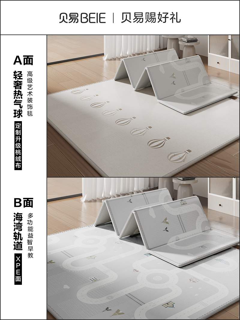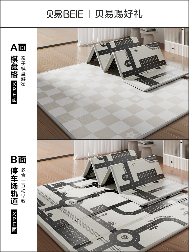 【社群瑕疵秒杀】贝易折叠爬行垫 双面XPE宝宝爬爬垫(存在划痕 脏污 压痕 破洞 误差等 完美主义慎拍,瑕疵商品不退不换哦)(折叠垫的自身属性决定一定有折痕,介意勿拍。收到退款就是发不了哦)