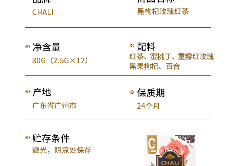 CHALI茶里黑枸杞玫瑰红茶盒装30g(新版)