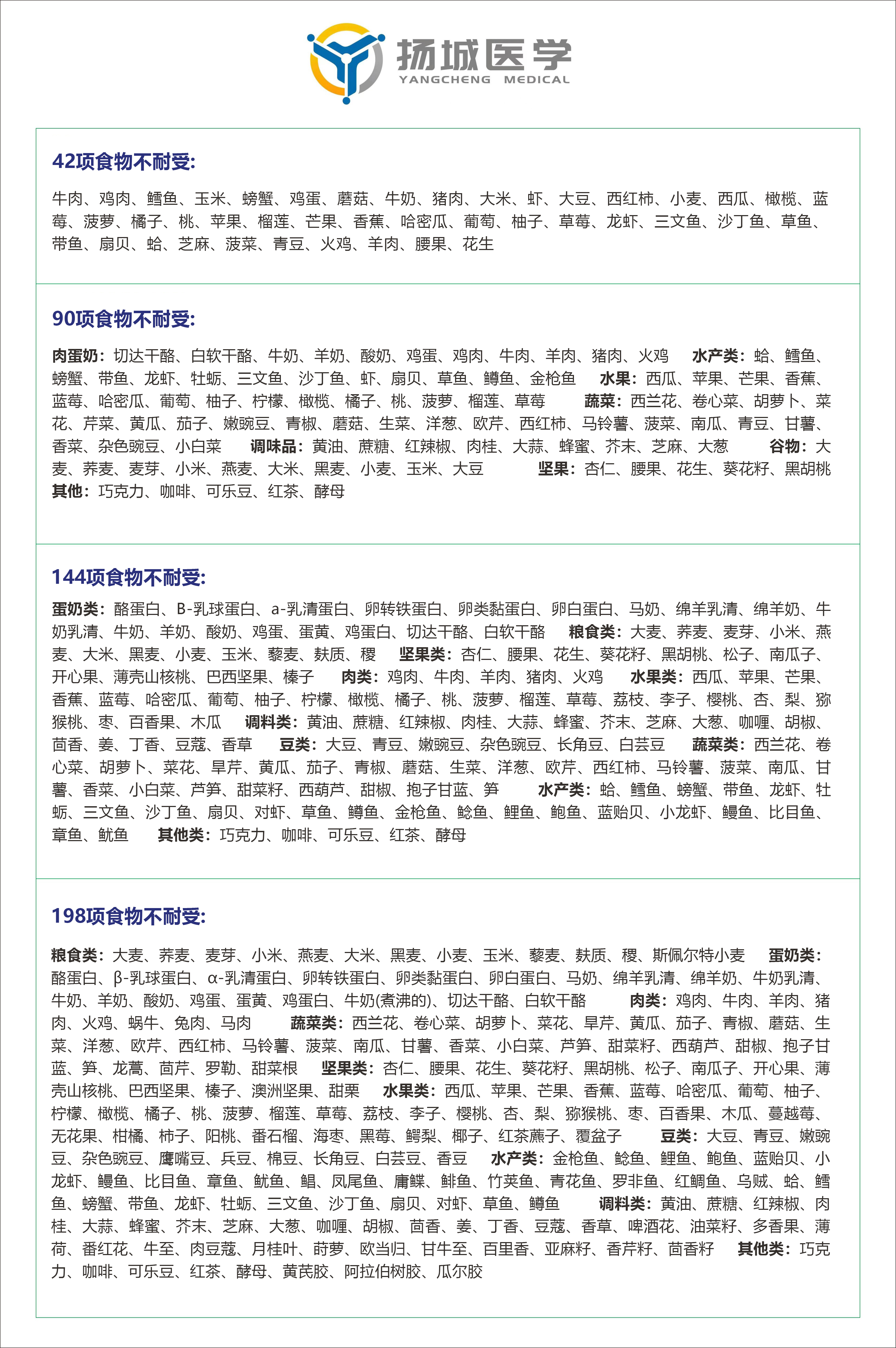 【检测】食物不耐受检测套餐(含报告解读,方案设计)(扬城)