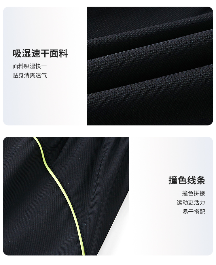 2.后身饰有撞色嵌条设计,增强运动流动感