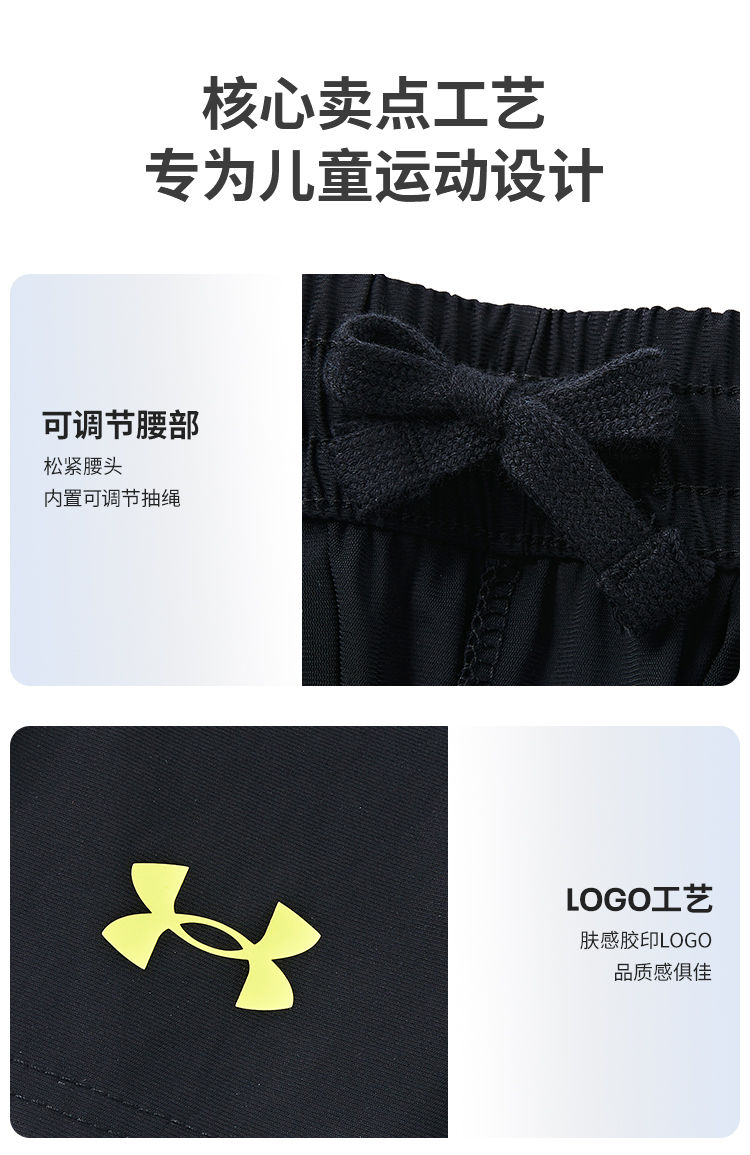 【12月-特惠福利】正品Under Armour安德玛男童中大童夏款吸湿速干透气针织短裤 242123177超低折扣