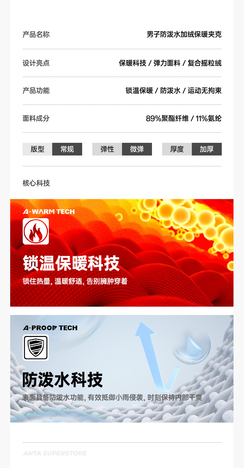 超级安踏防水加绒外套男秋冬保暖通勤夹克连帽运动上衣152547602U