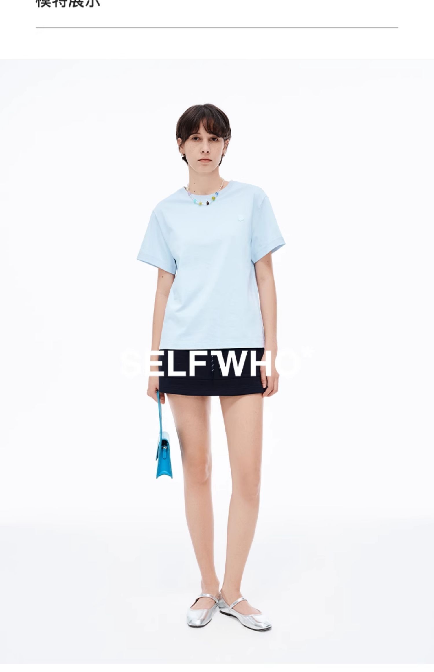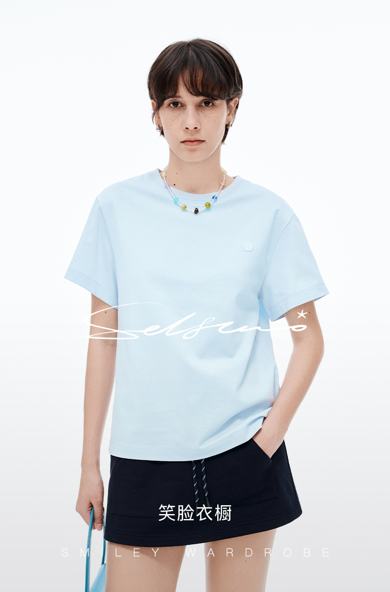 【笑脸衣橱】SELFWHO笑脸衣橱精梳棉短袖T恤女2025夏新款宽松云柔感多巴胺上衣