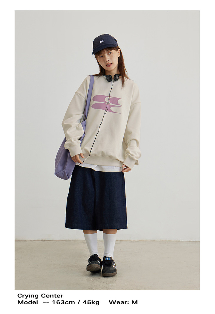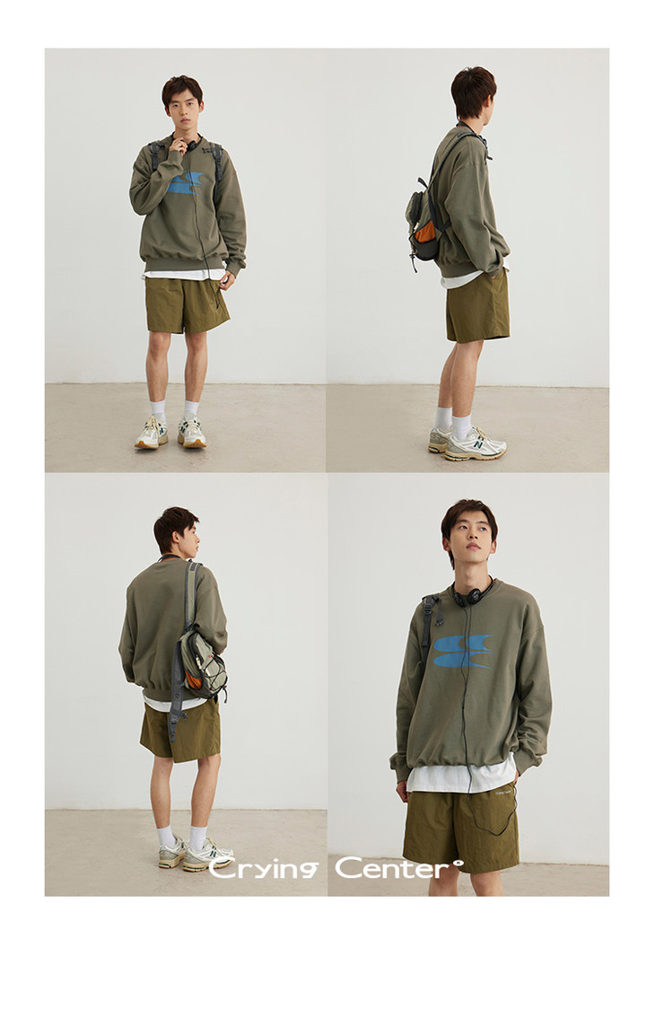 CryingCenter莫兰迪色系经典logo圆领套头毛线圈长袖卫衣哭喊中心