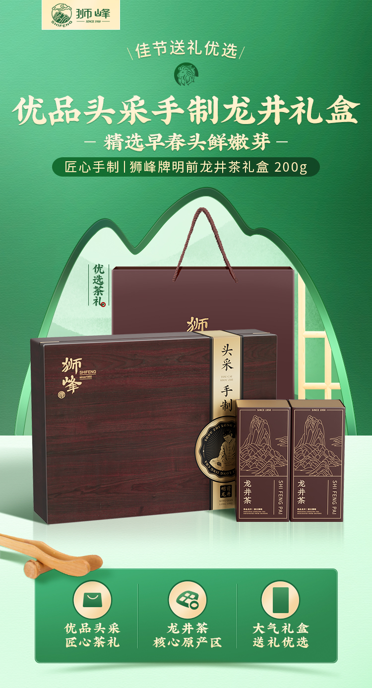 狮峰牌龙井茶礼盒茗狮醒春高手200g.WN