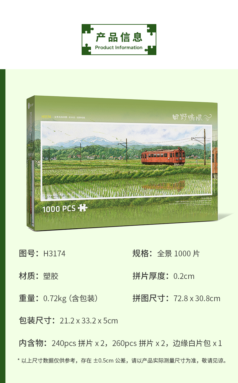 1000片全景平面拼图塑料拼图H3174 全景长版拼图-松本忠-田野鸣风