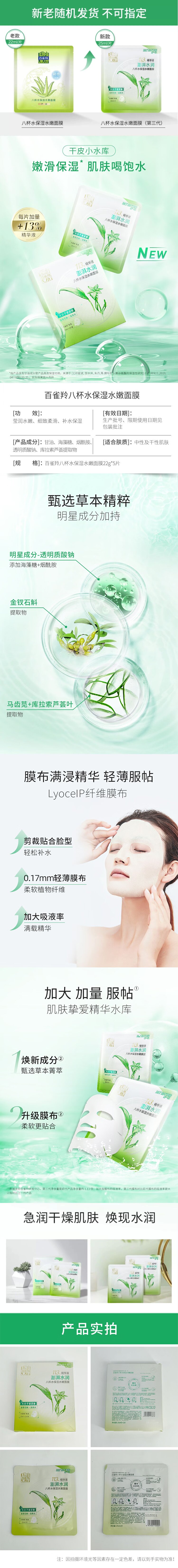 百雀羚 面膜 八杯水保湿水嫩面膜 30ml*5片