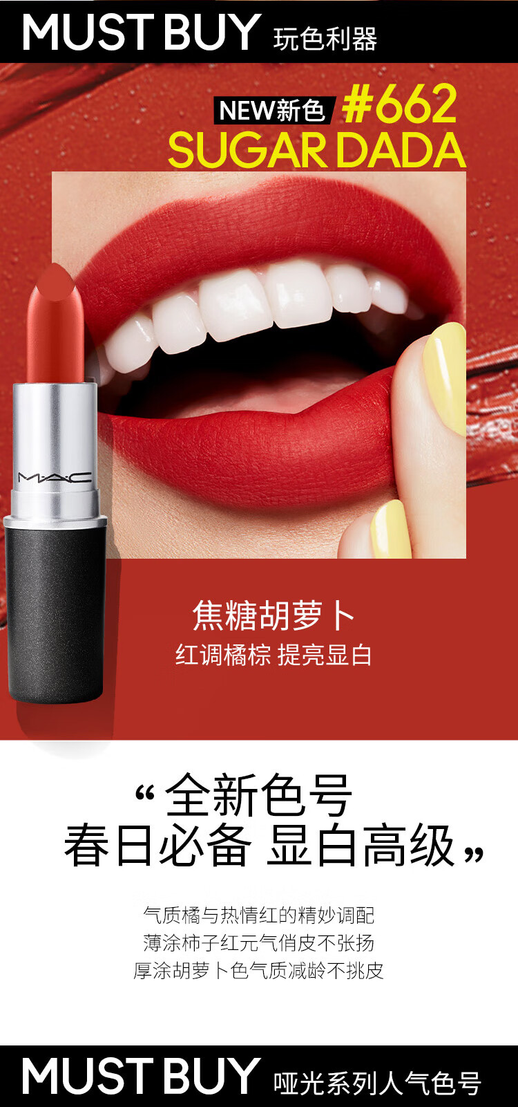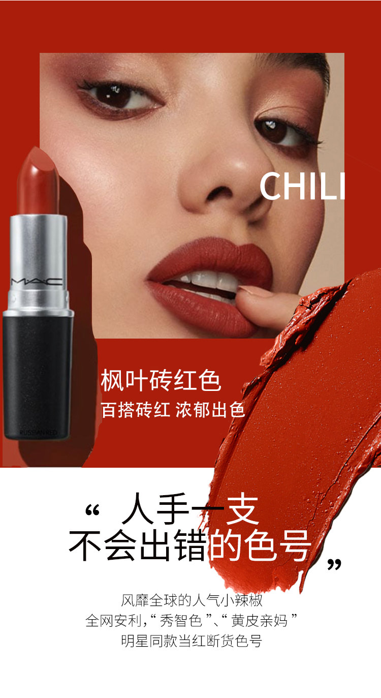 【保税仓】MAC/魅可子弹头唇膏CHILI小辣椒602-3g