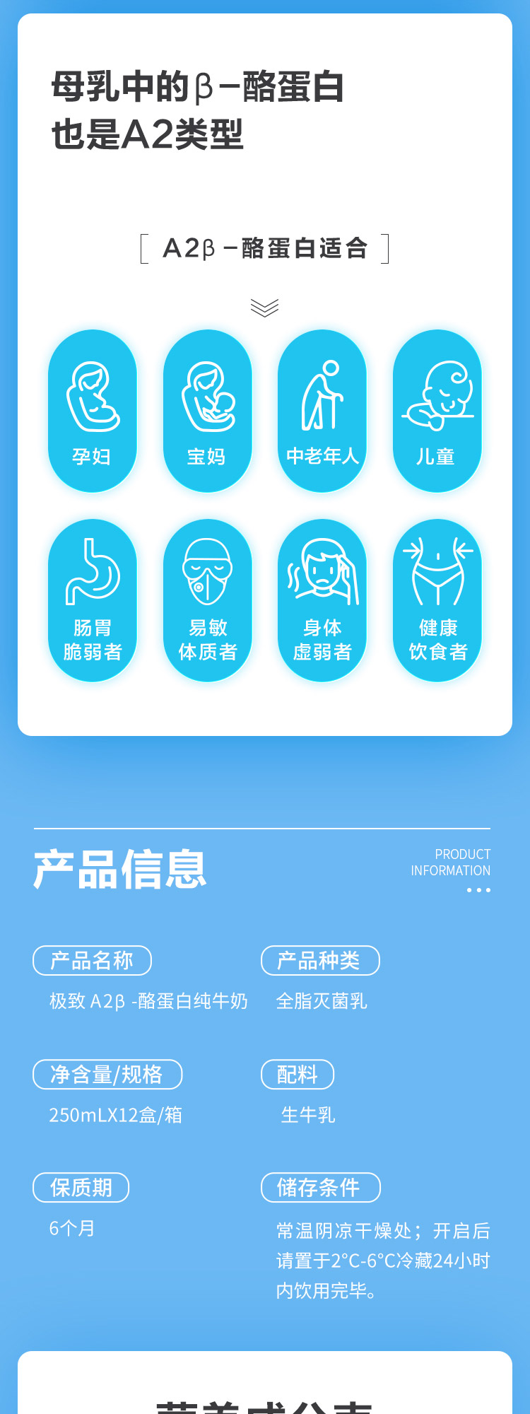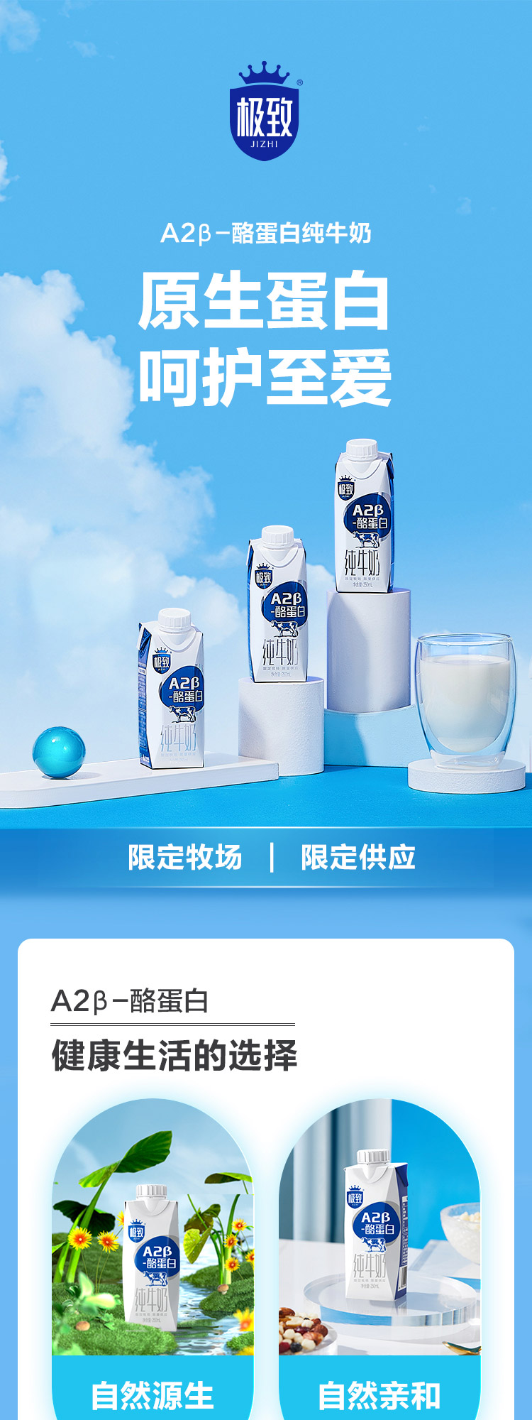 【快递到家-常温】极致系列A2β酪蛋白纯牛奶整箱250ml*12盒*2提