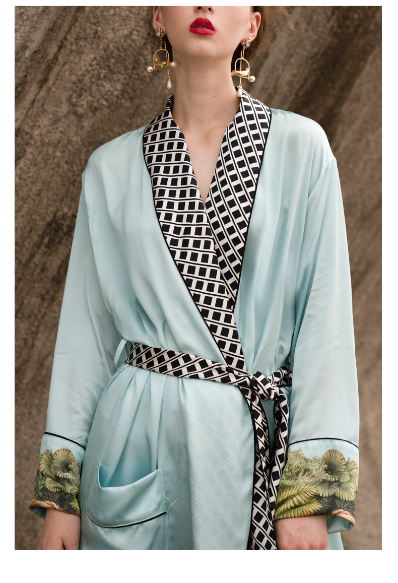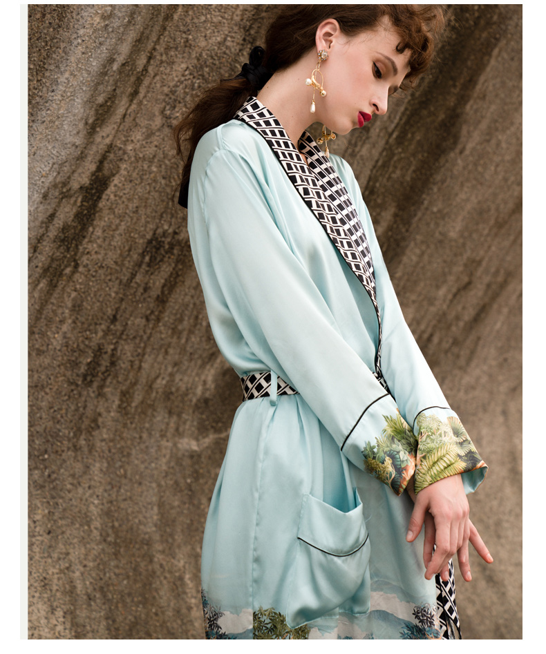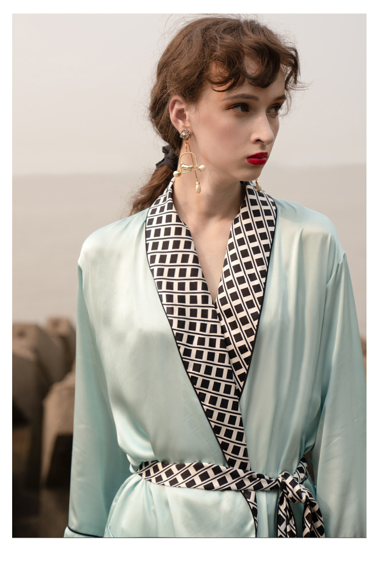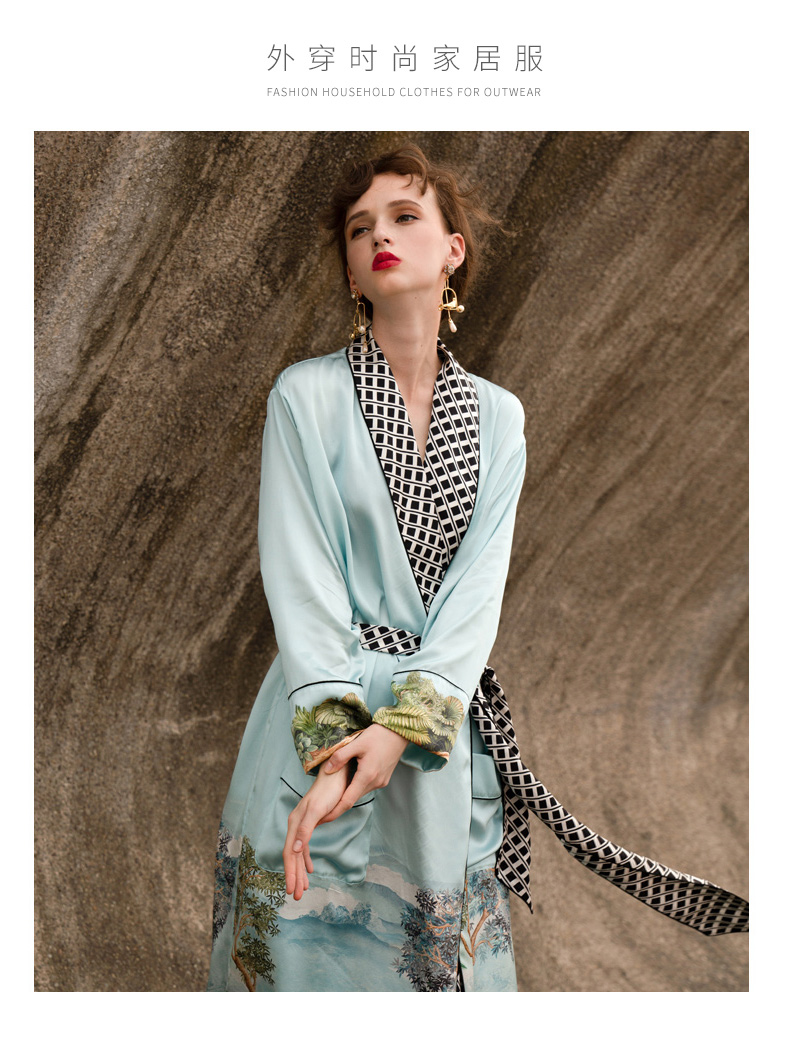 Solo seta重磅真丝睡袍女长款桑蚕丝系带可外穿家居服浴袍女秋冬