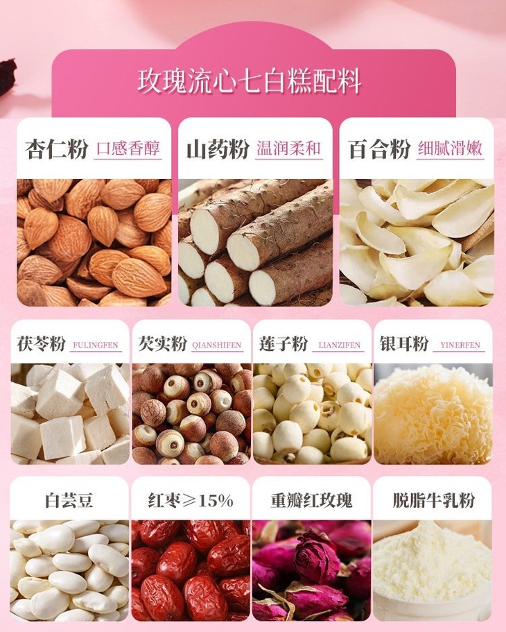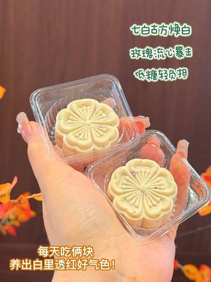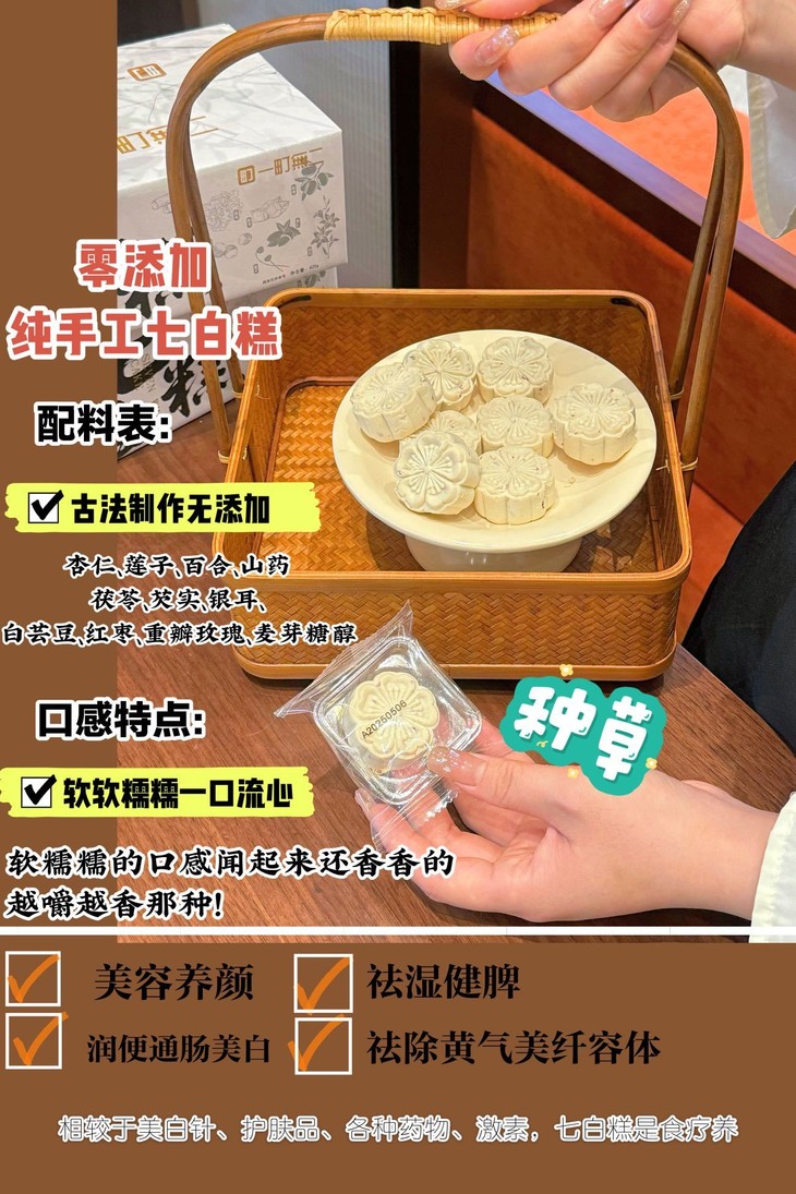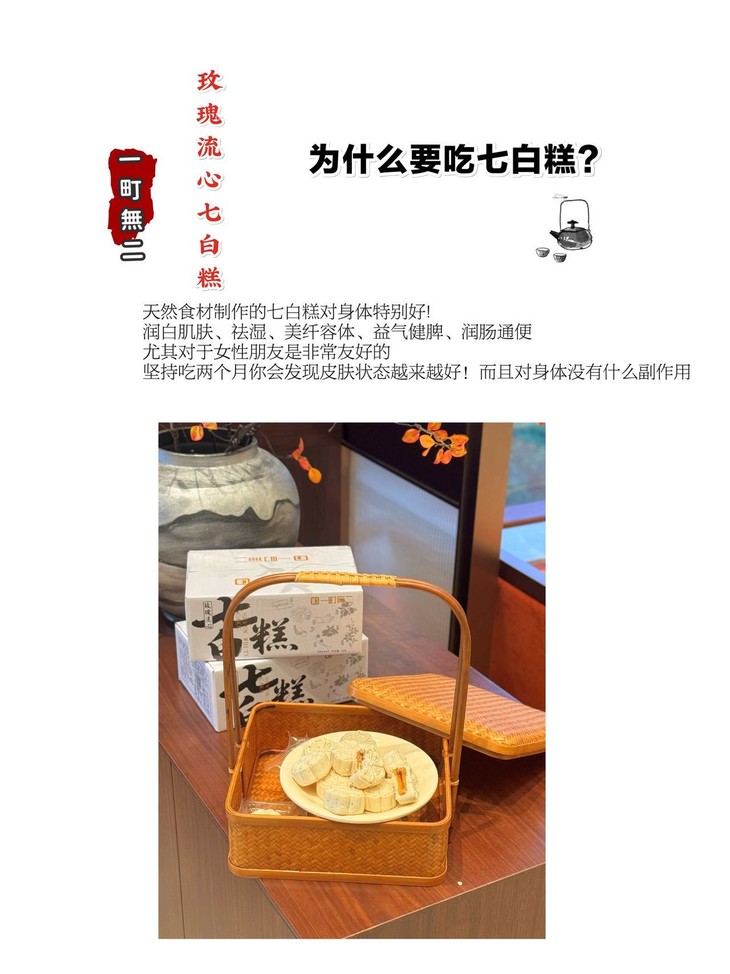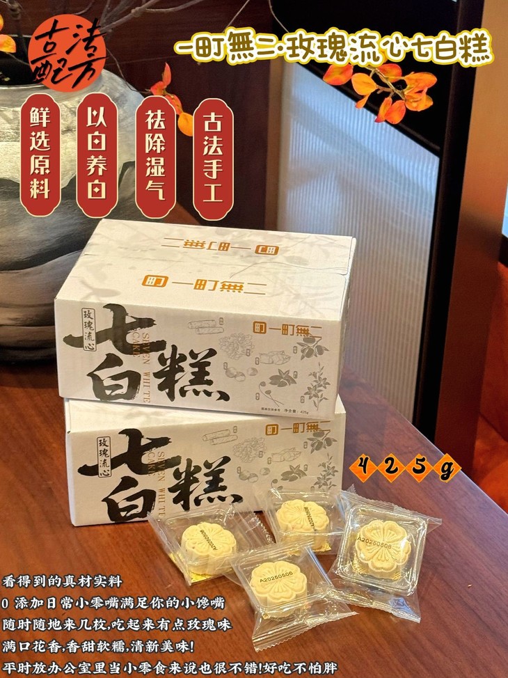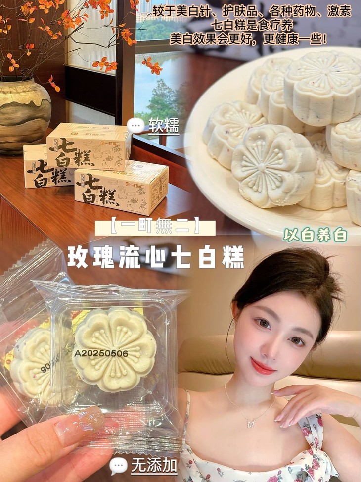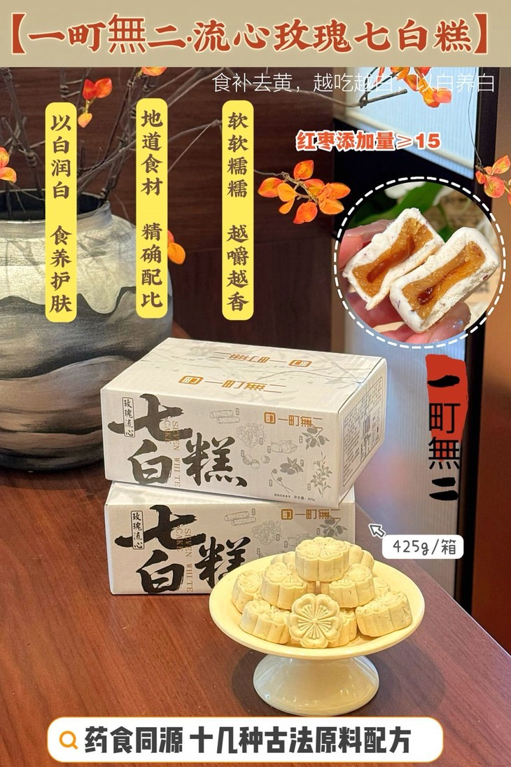 以白养白❗❗脸黄脸黑的姐妹一定要冲【一町無二·玫瑰流心七白糕】软糯Q弹的糕体,一口会流心爆浆~ ✅精选七白粉+重瓣红玫瑰,药食同源 ✅0蔗糖添加,控脂期更友好!