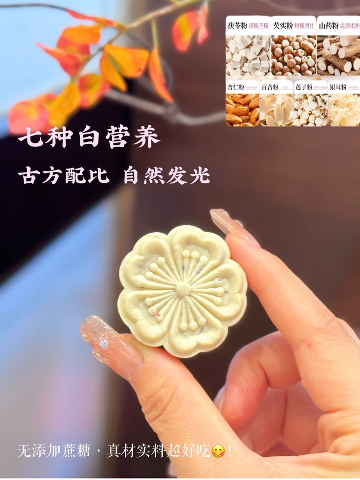 以白养白|七白粉🌱 中医认为:“白色入肺,肺主皮毛” 肺没养好,皮肤和头发就容易变得粗糙、暗淡 所以日常建议多吃一些白色润肺的食物来养肺。 七白粉选用7种健康营养的的药食同源食材 山药、莲子、百合、杏仁、银耳、茯苓、芡实 美白养颜 润肺止咳 健脾养胃 改善睡眠 滋养肌肤🌱素颜也能美翻天!
