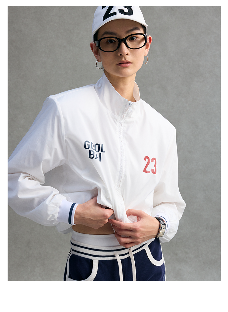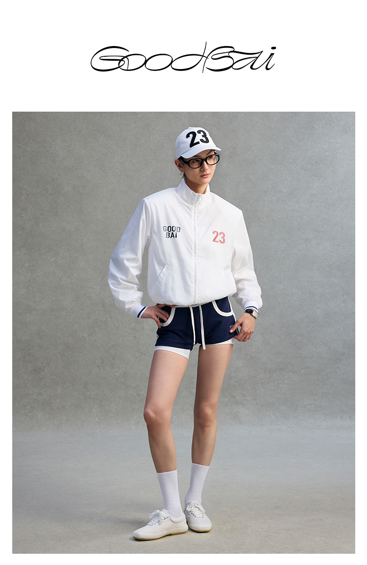 GOODBAI 粗体23 logo撞色印花翻领拉链外套
