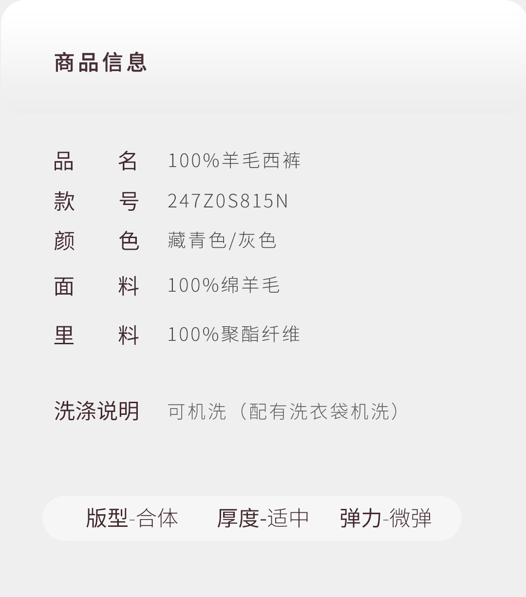 【大师金标】100%绵羊毛免腰带高档西裤247Z0S815N