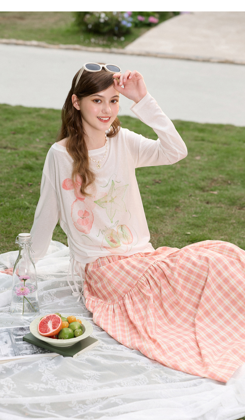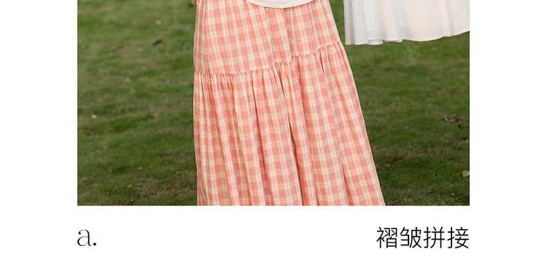 三彩独醒2026春季新款格纹半身裙松紧腰A字裙长裙清新F