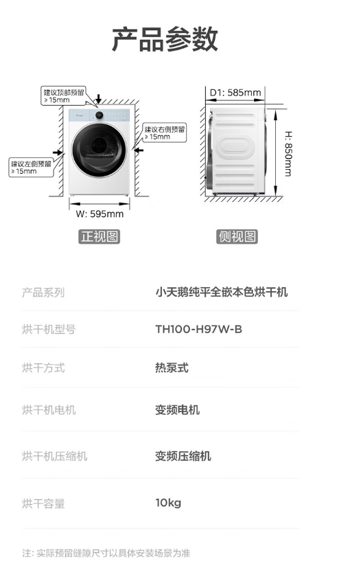 【限天津区域】小天鹅/烘干机/TH100-H97W-B