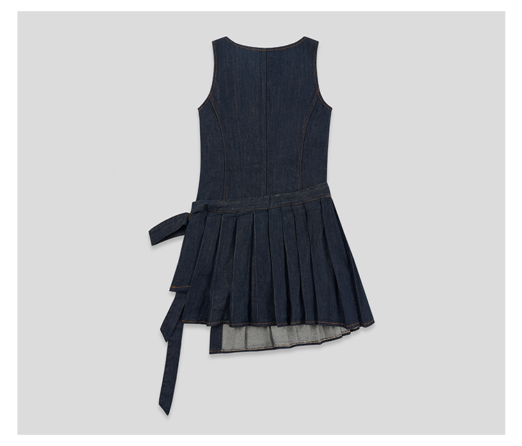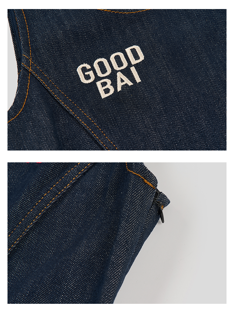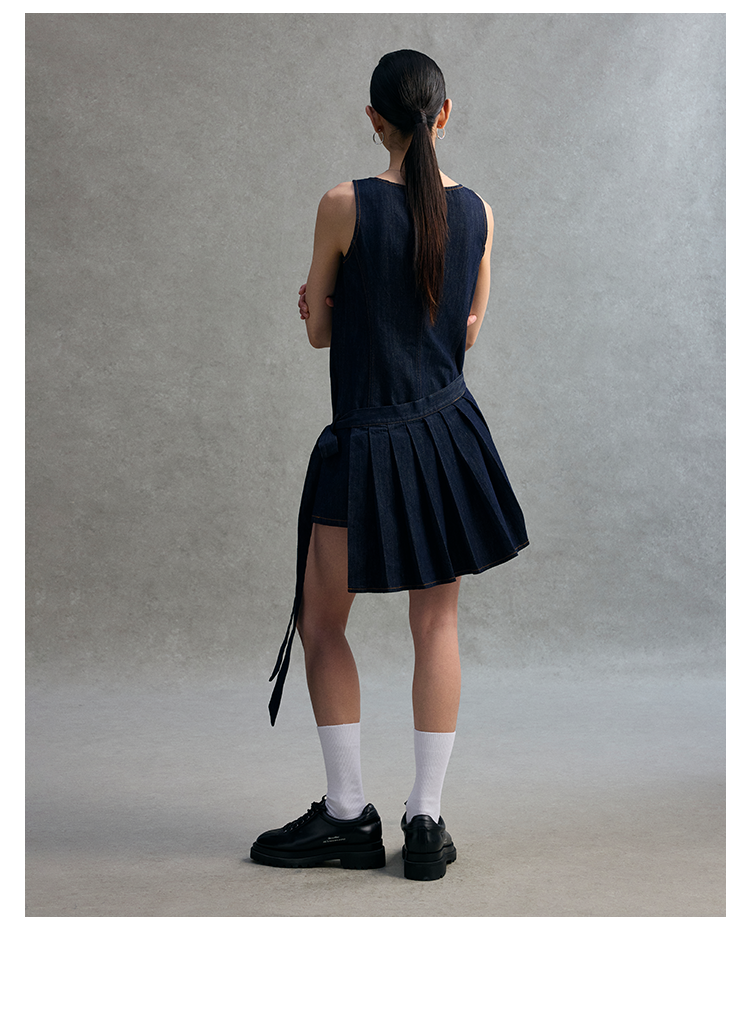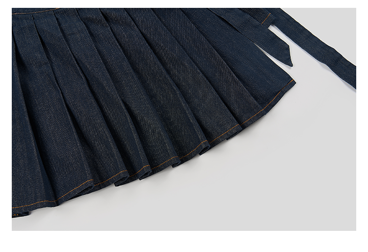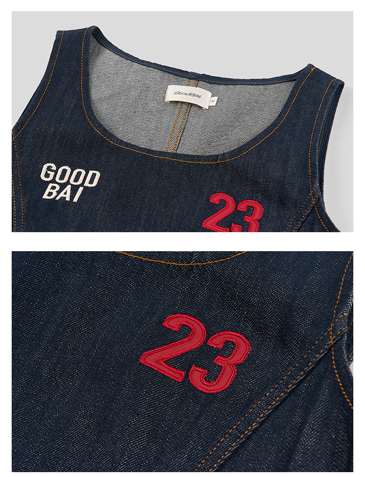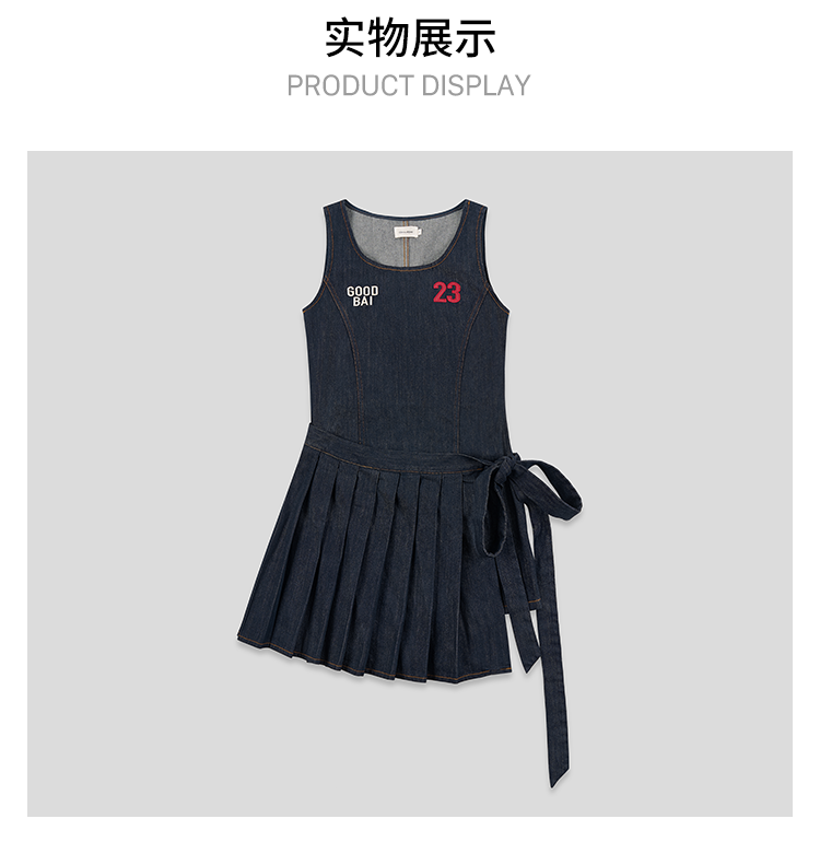 GOODBAI 粗体23 logo印花两件式百褶牛仔连衣裙