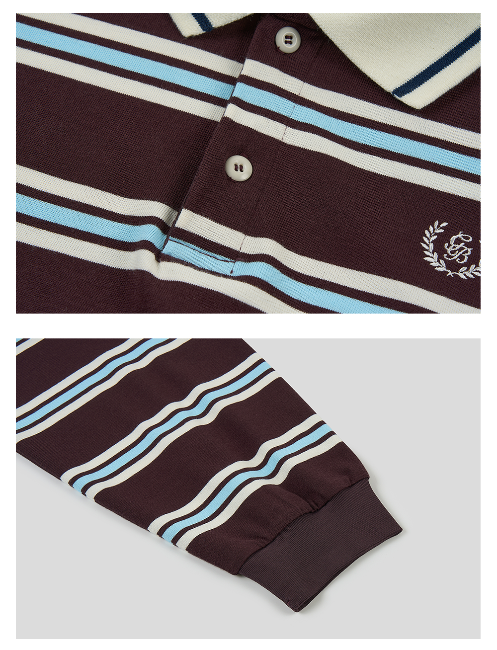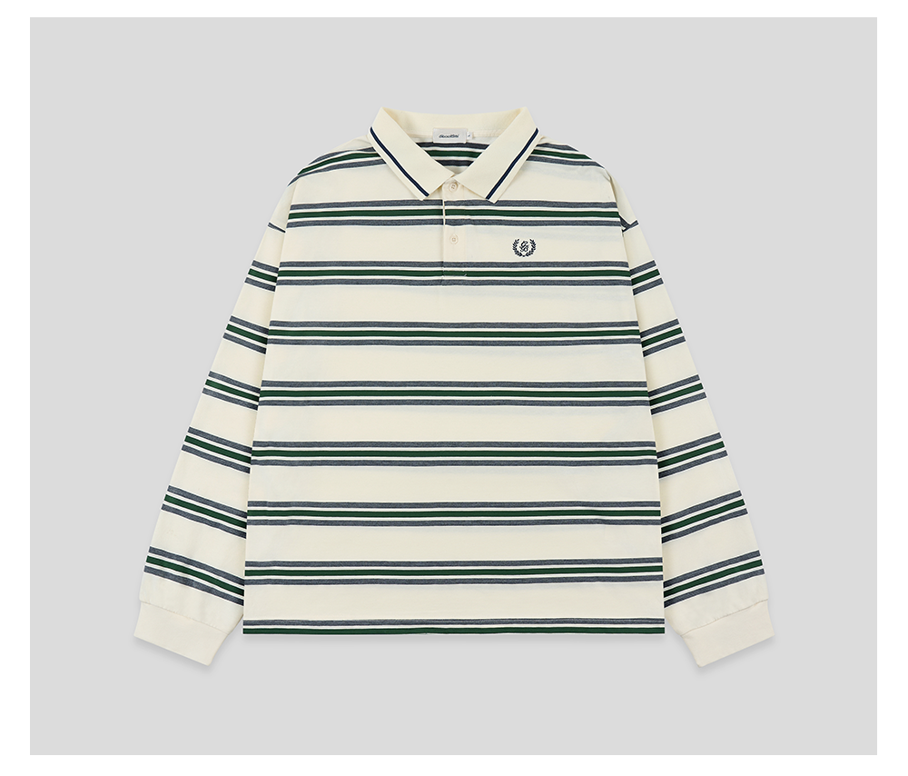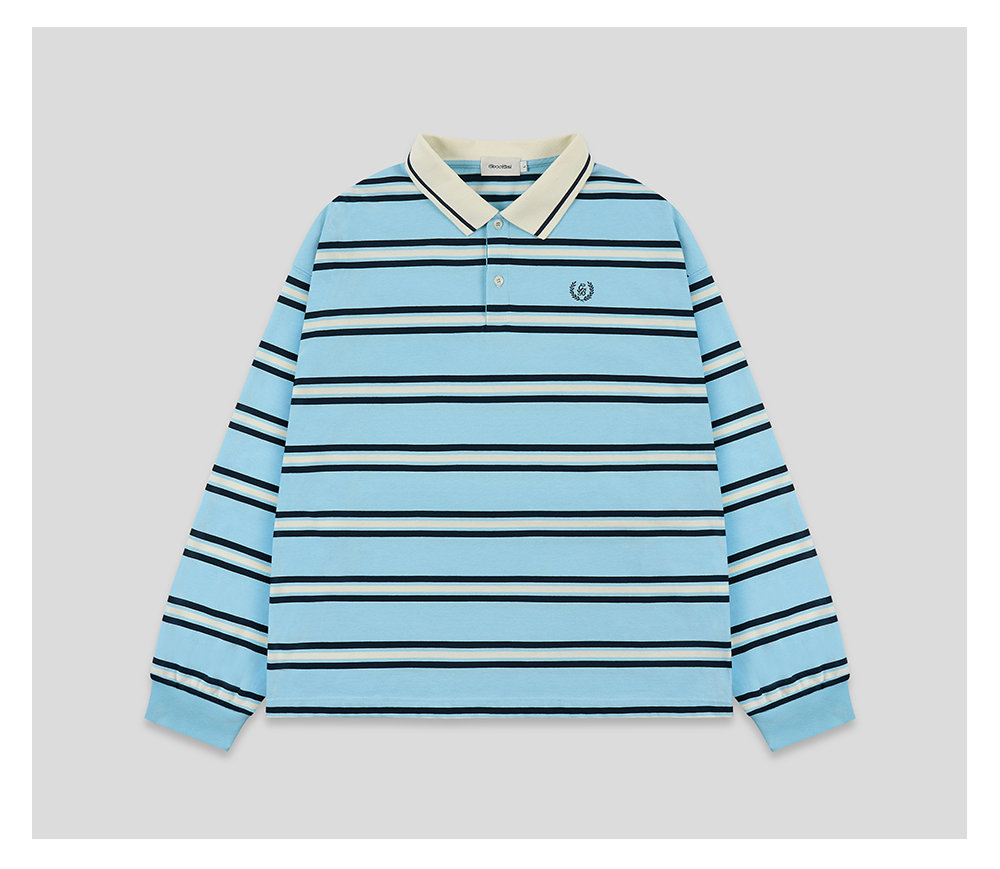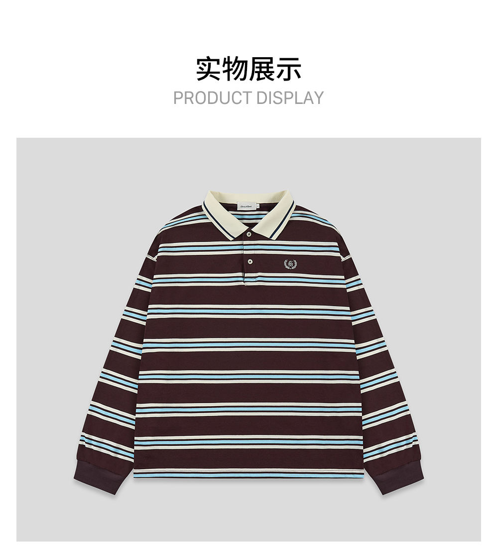 GOODBAI新款刺绣logo翻领撞色条纹长袖POLO衫男女同款