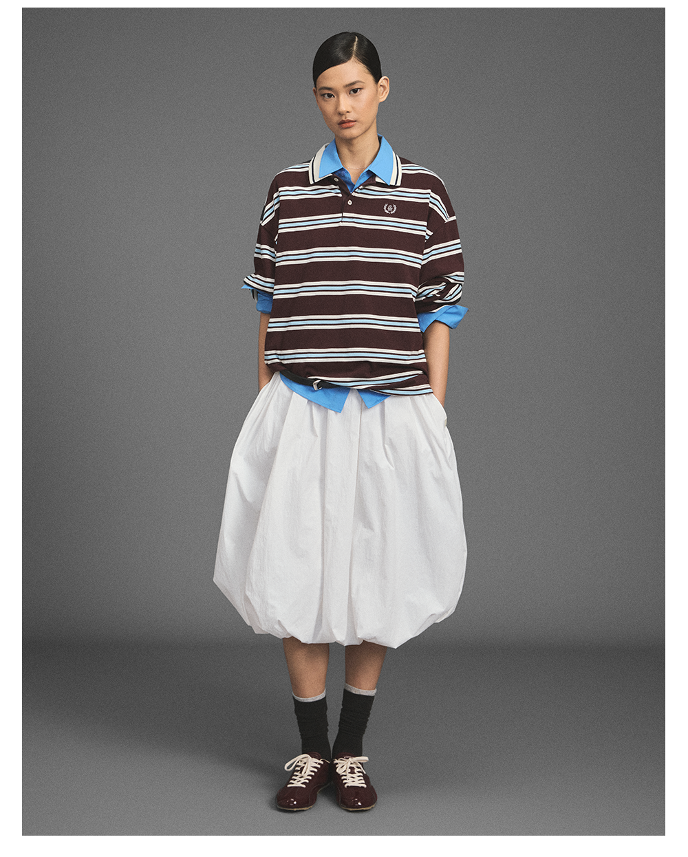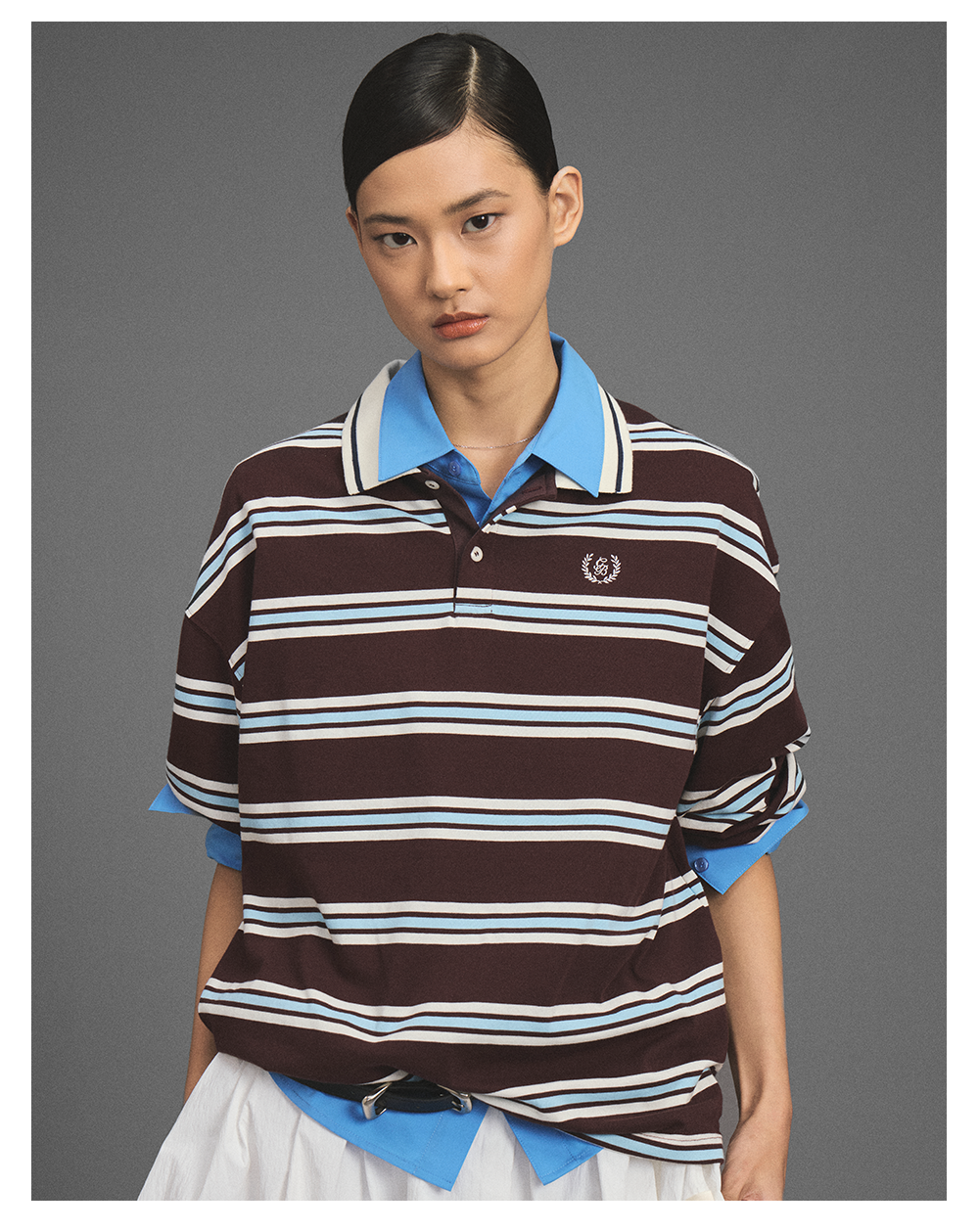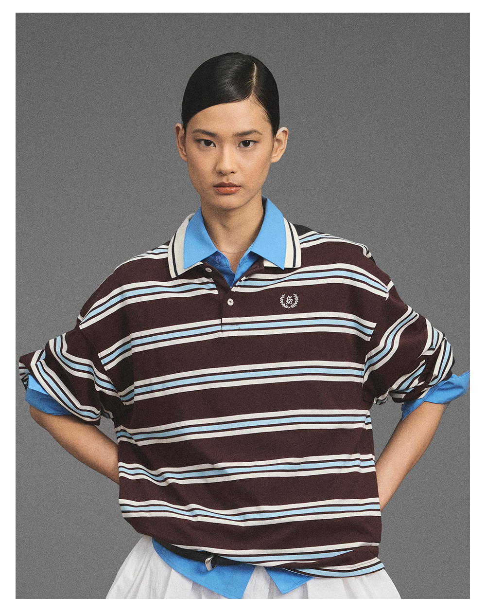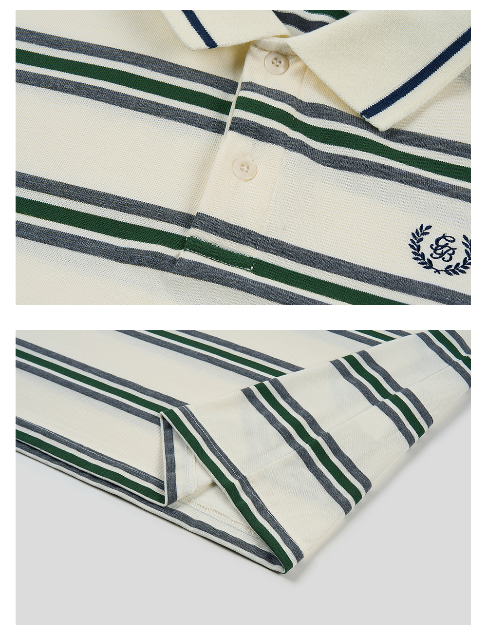 GOODBAI新款刺绣logo翻领撞色条纹长袖POLO衫男女同款