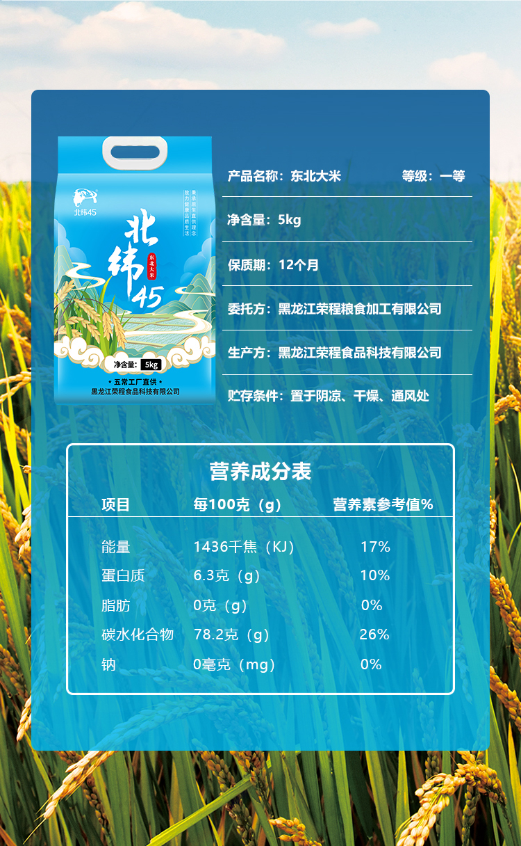 北纬45 东北大米 5kg/袋