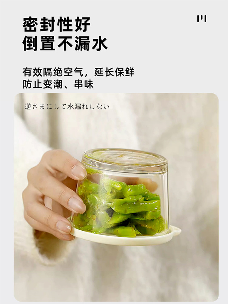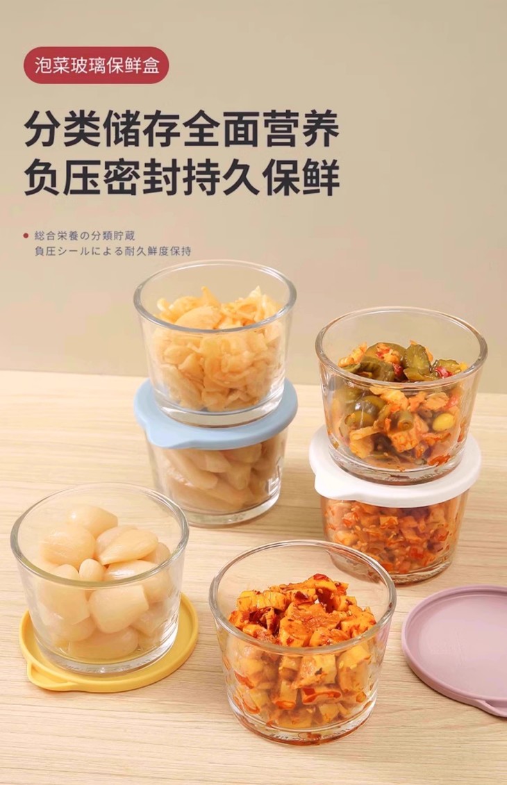 玻璃罐还配有盖子,密封性能超赞🤩! 可以有效防止食物串味 让冰箱里的每一种食物都保持自己的原汁原味 不管是放剩菜剩饭,还是储存新鲜水果、蔬菜 都能很好地保鲜,延长食物的保质期 再也不用担心食物容易变质啦👏 有效隔绝空气,防止咸菜氧化变质 延长保鲜期,让每一口腌菜都保持新鲜脆爽