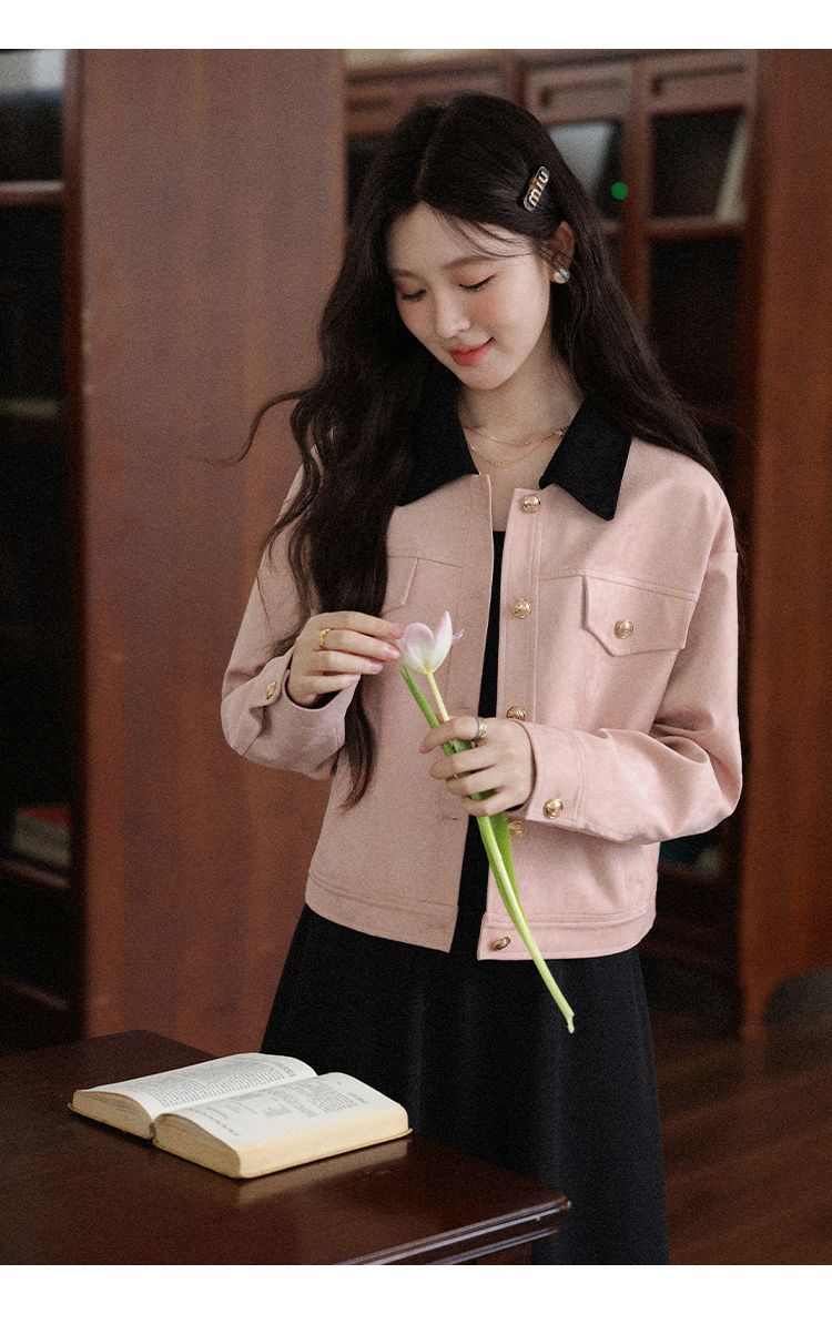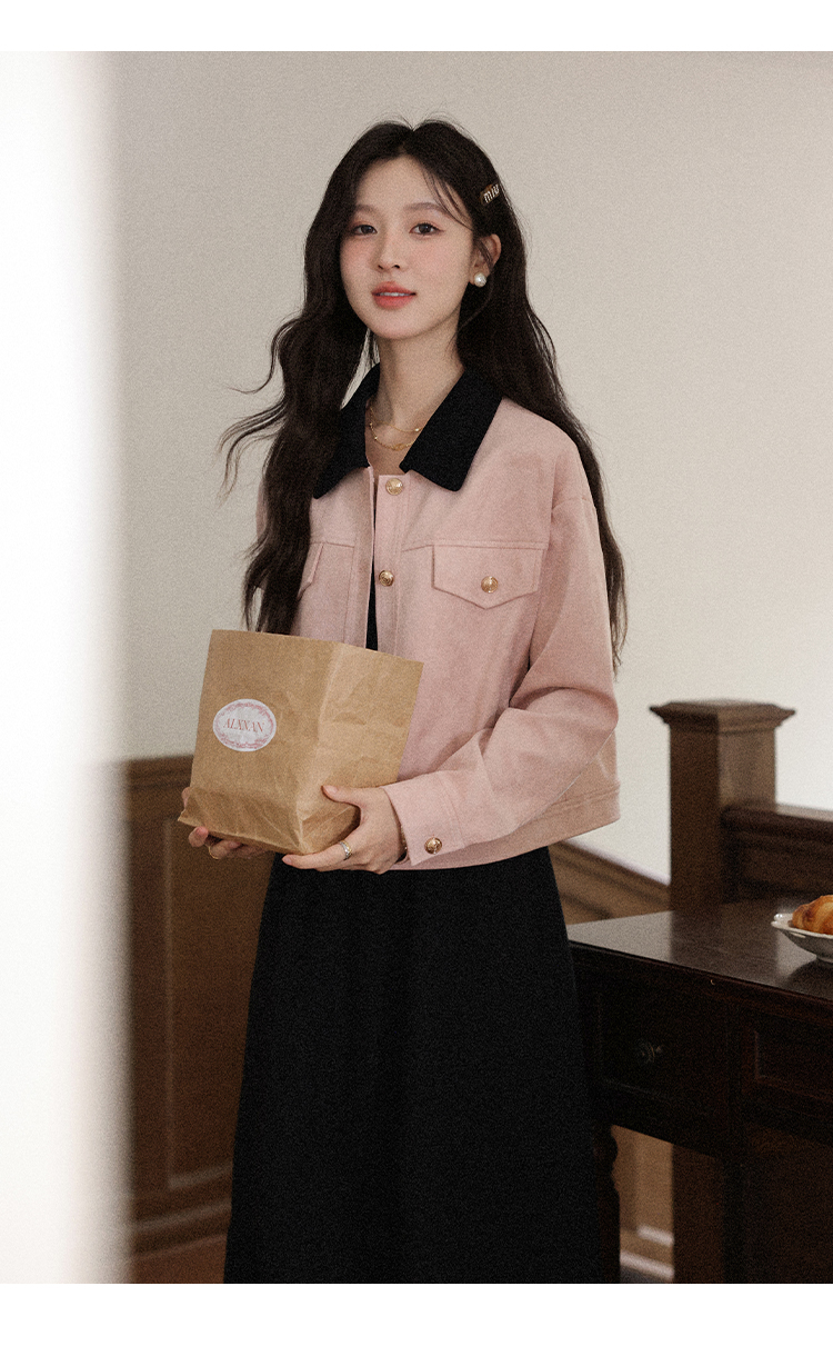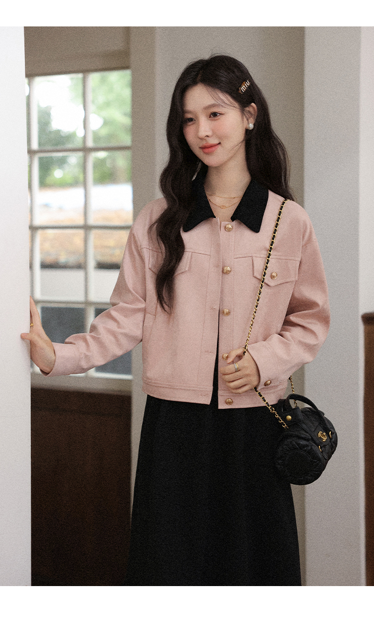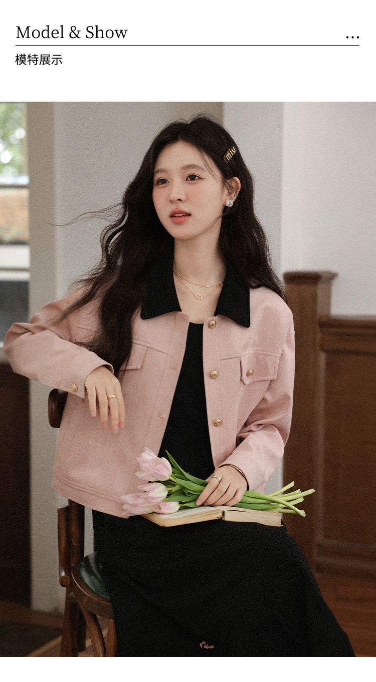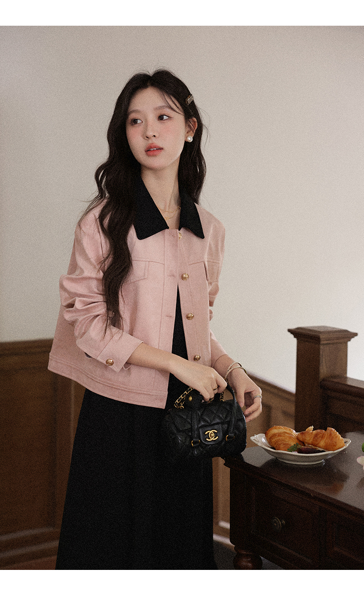 鹿向南「粉雾絮语」粉色小香风拼色短外套早秋新款气质百搭上衣女