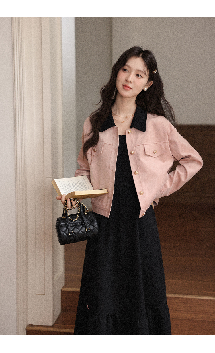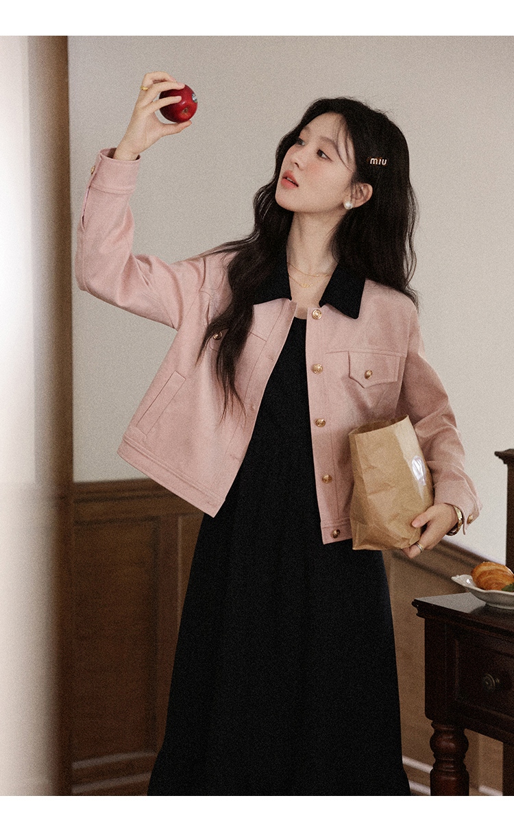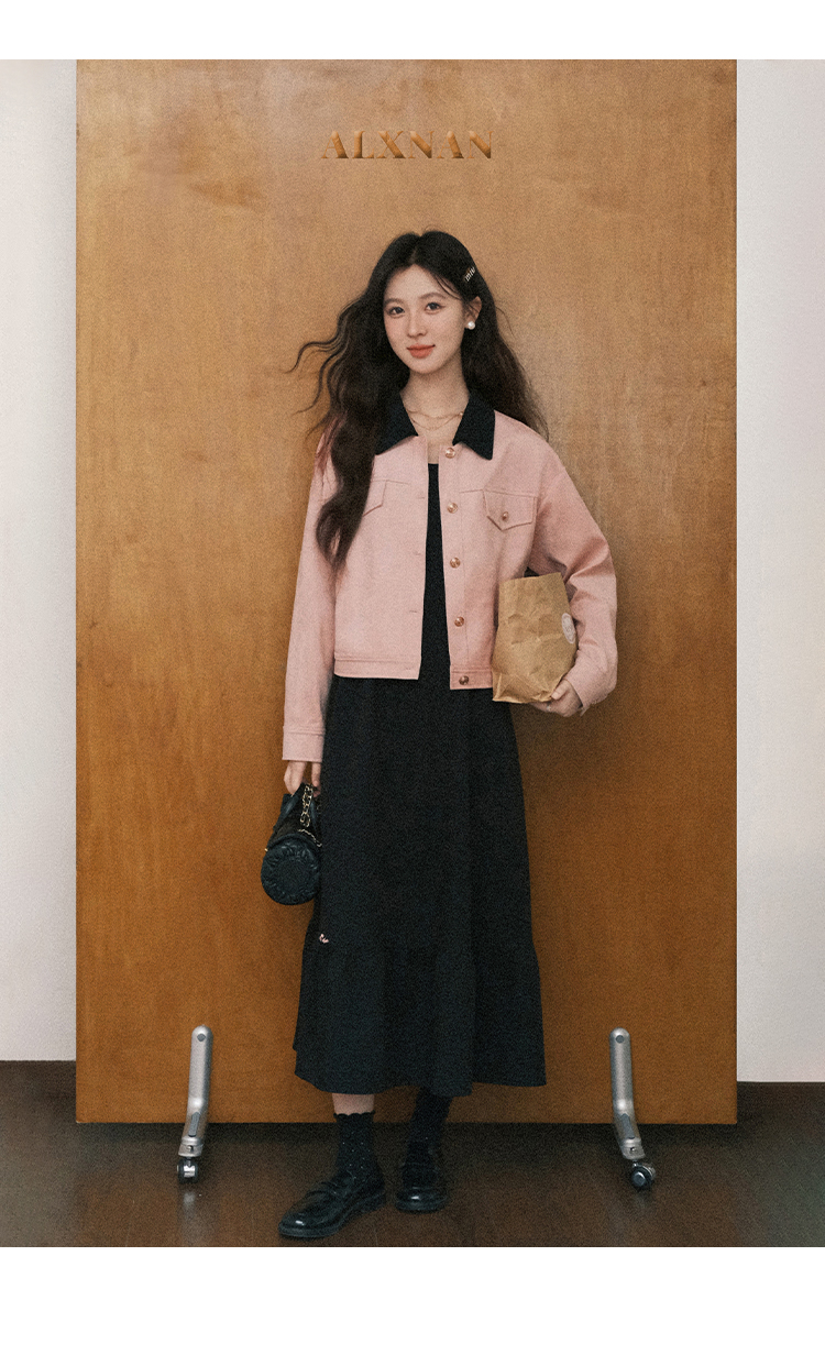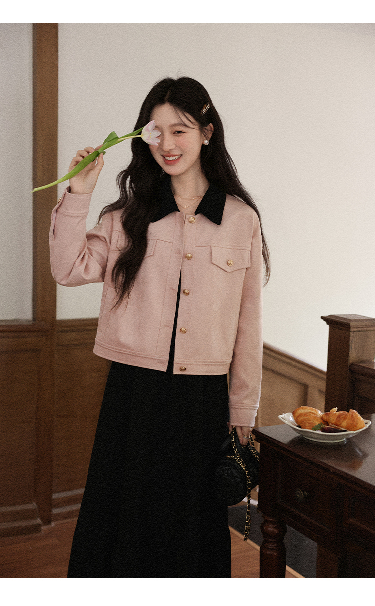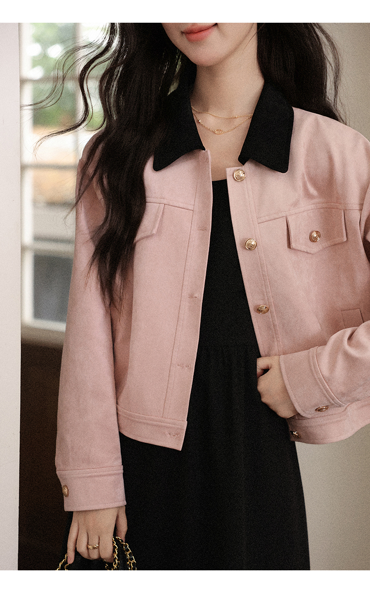 鹿向南「粉雾絮语」粉色小香风拼色短外套早秋新款气质百搭上衣女