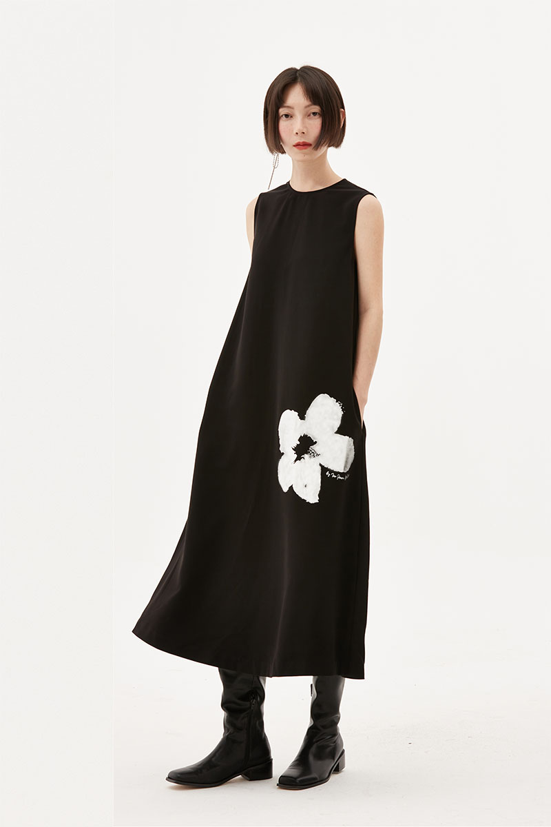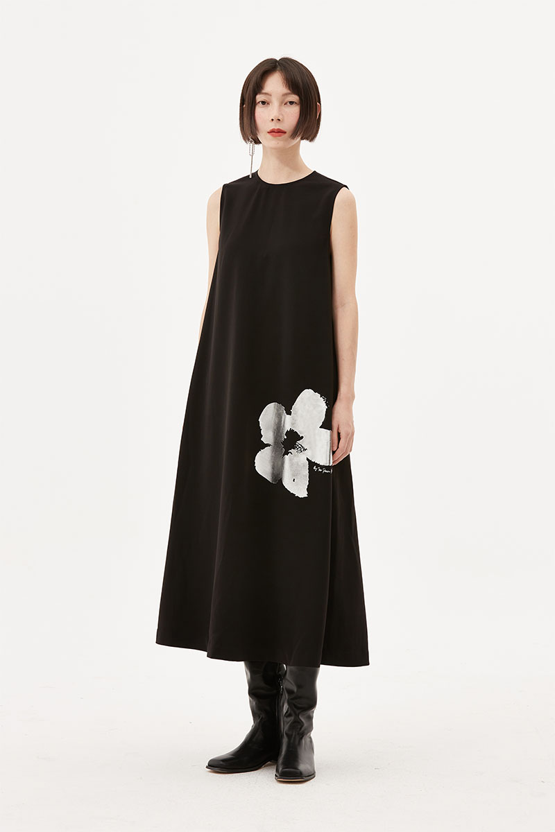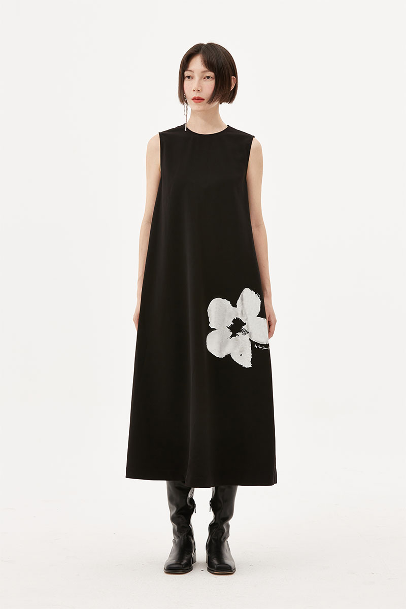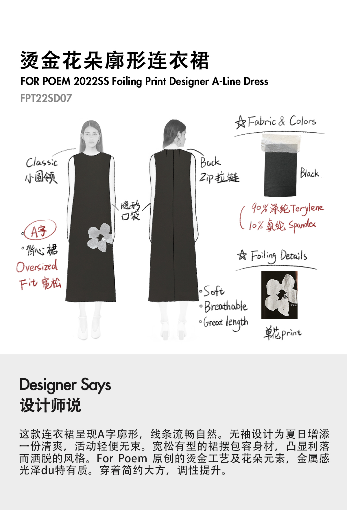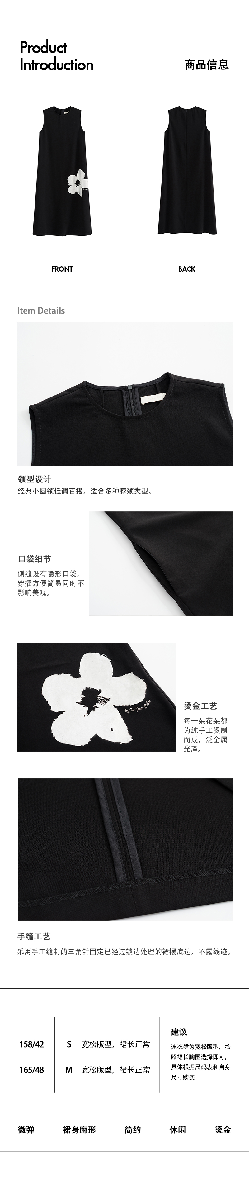 ForPoem 22SS烫金系列 花朵A字原创设计高级感休闲无袖极简连衣裙
