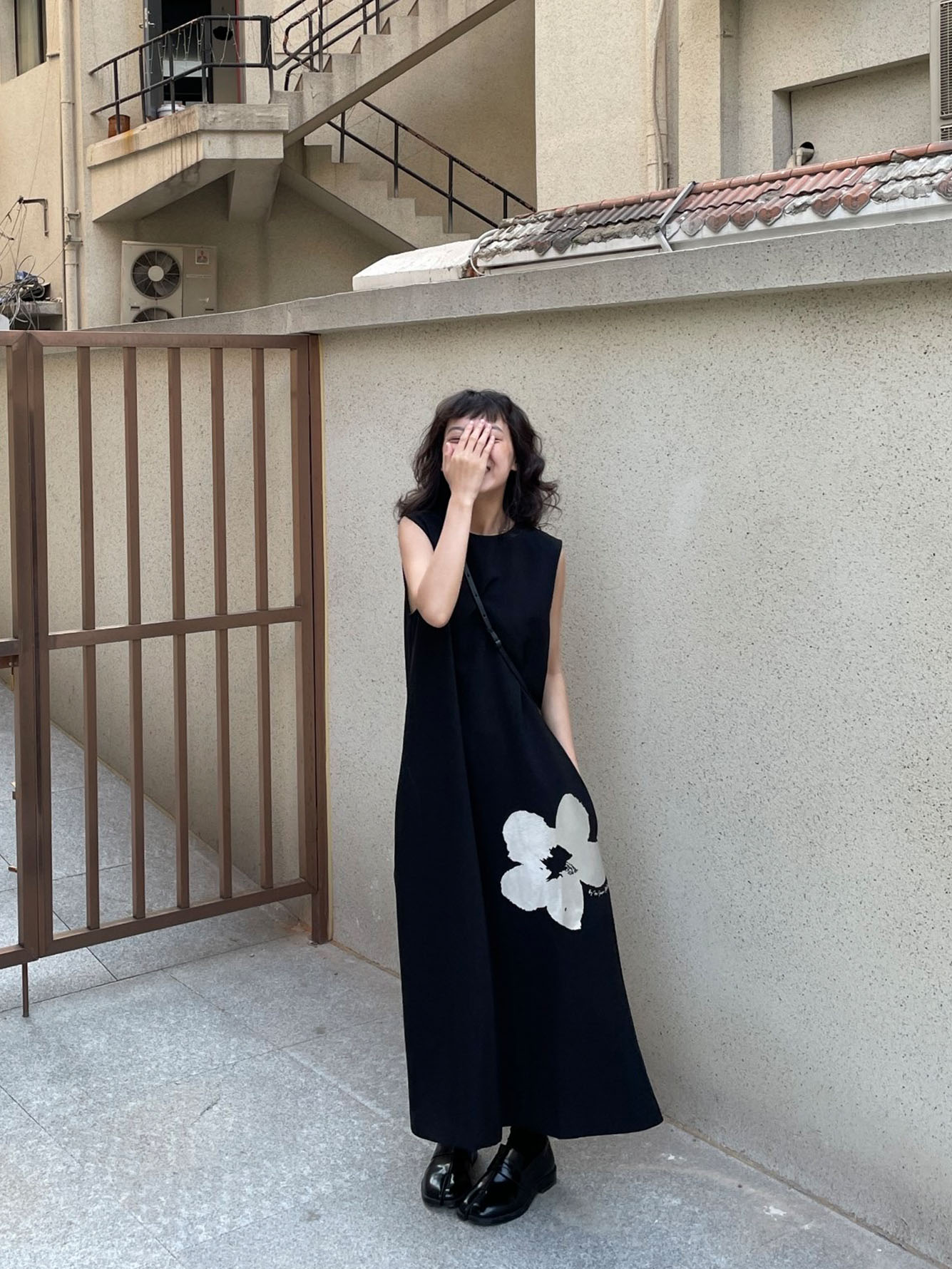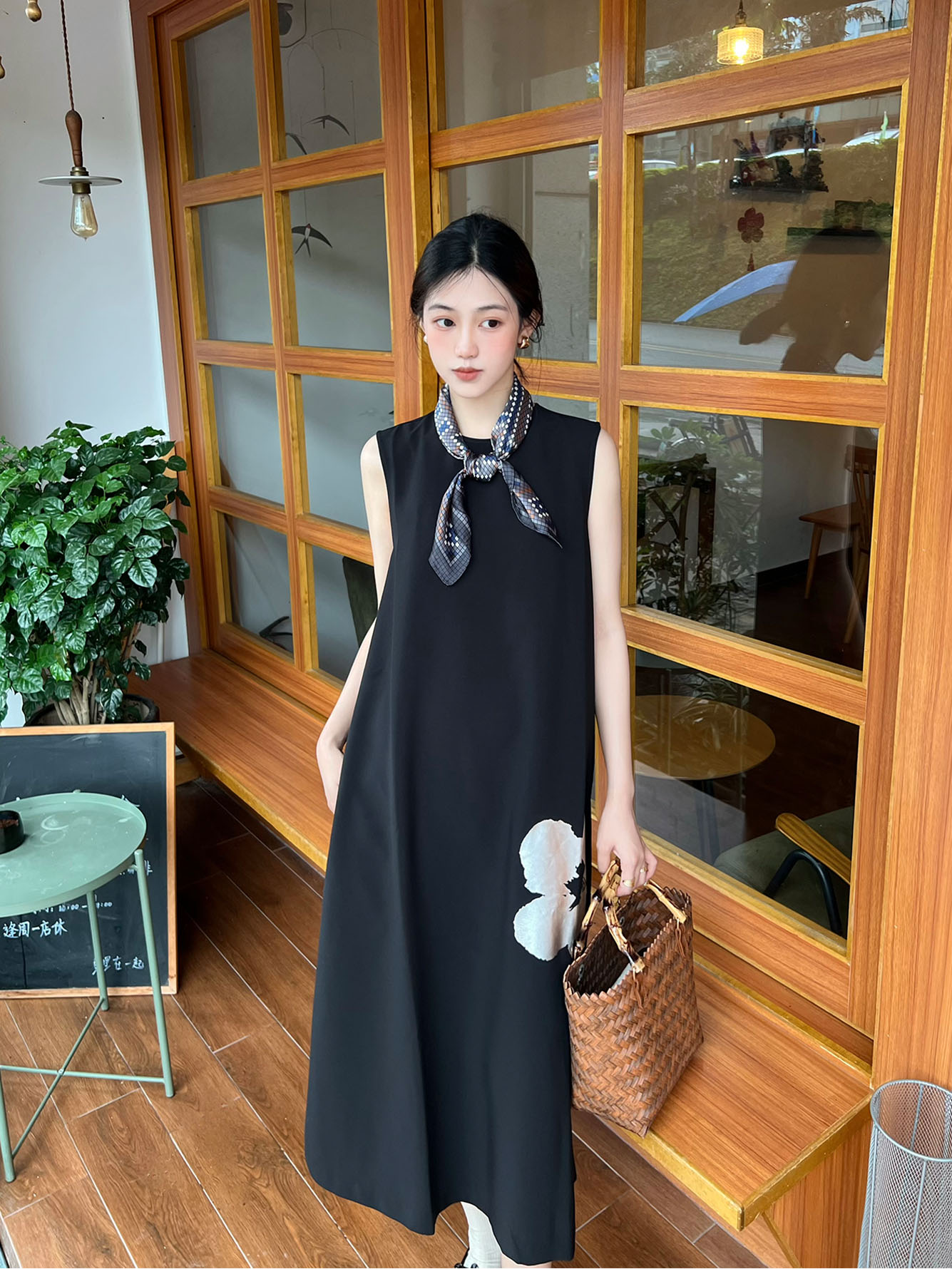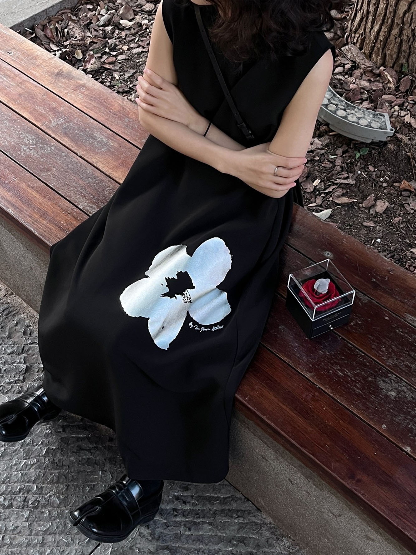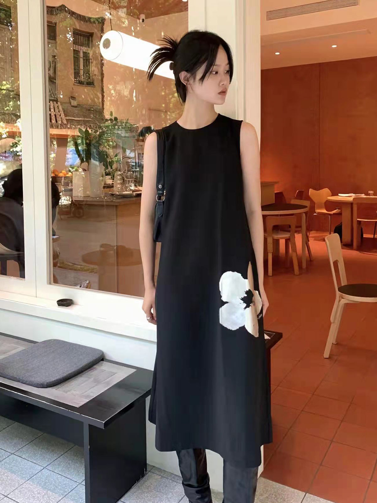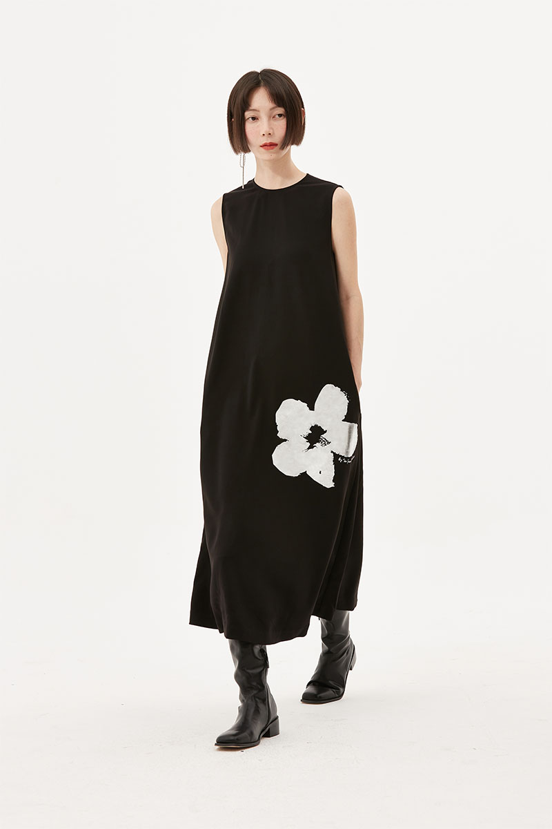 ForPoem 22SS烫金系列 花朵A字原创设计高级感休闲无袖极简连衣裙