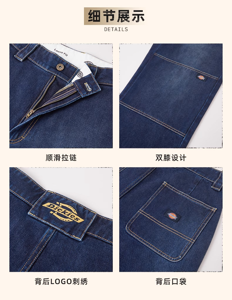 Dickies【田嘉瑞同款】宽松直筒牛仔裤男阔腿双膝休闲工装长裤 DK0A88RQ