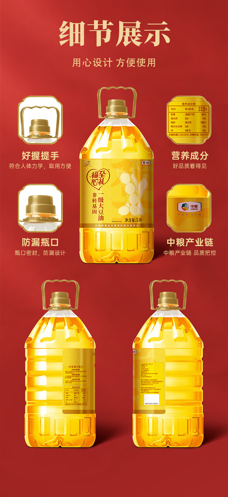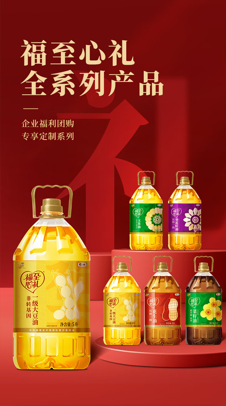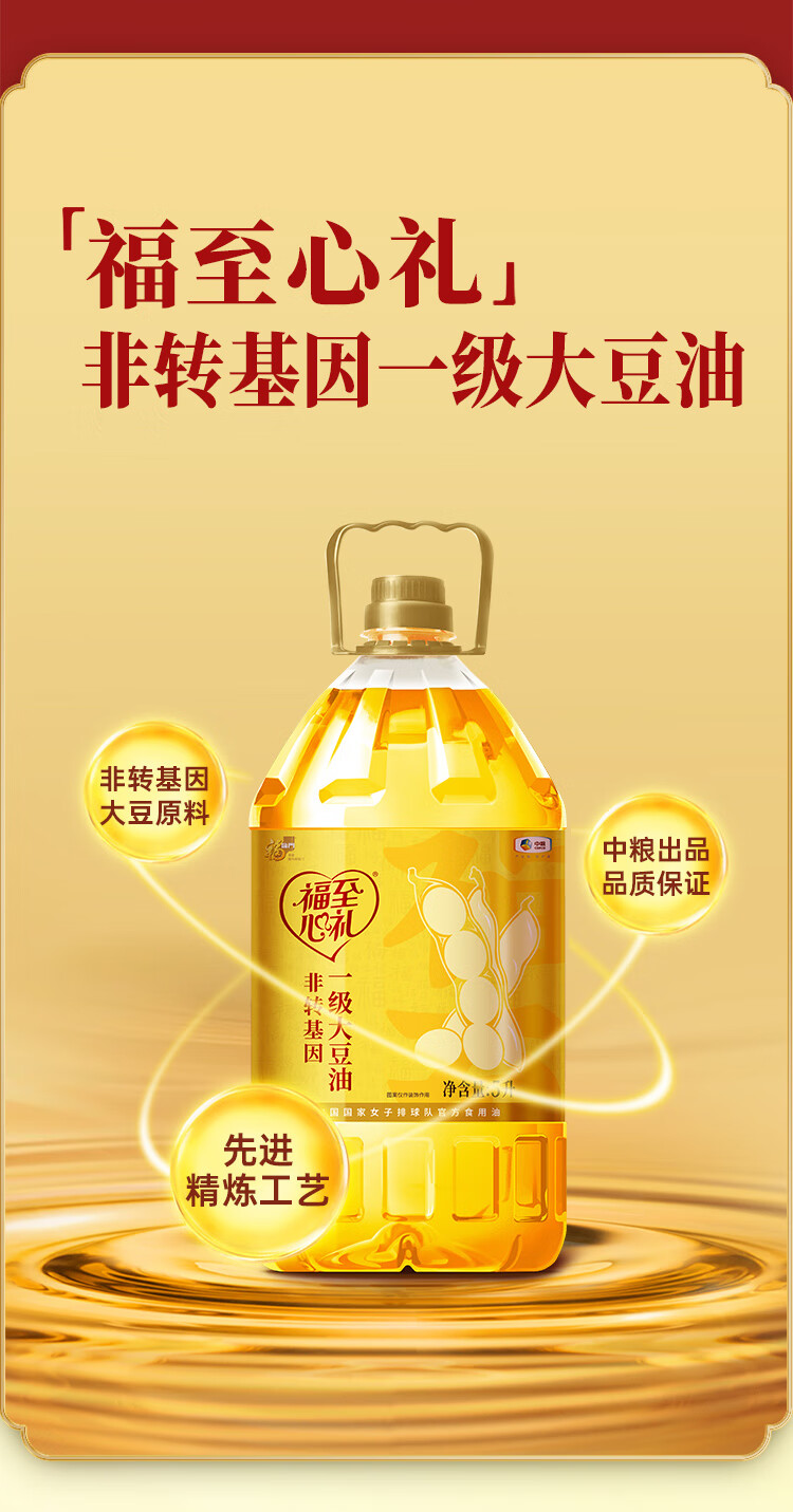 中粮福临门福至心礼非转基因一级大豆油5L