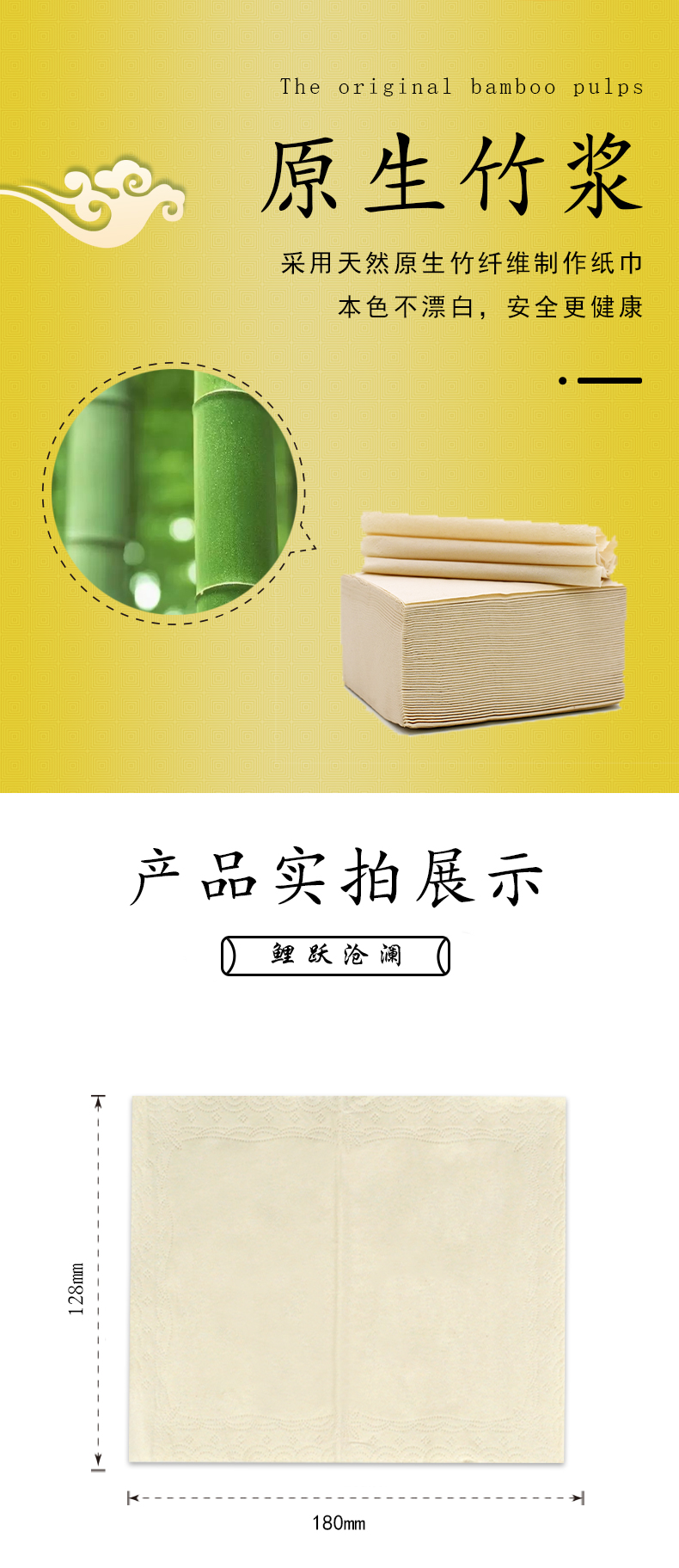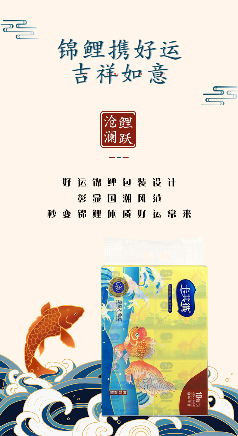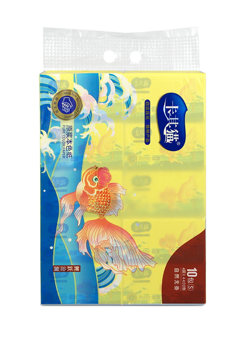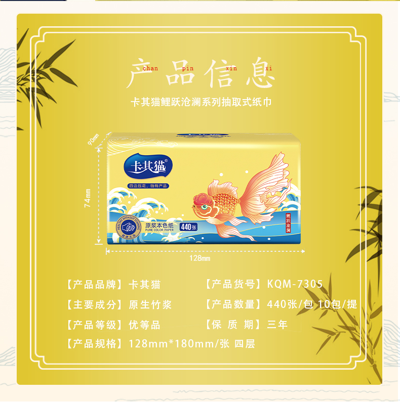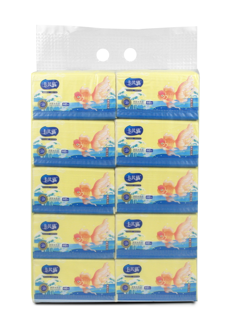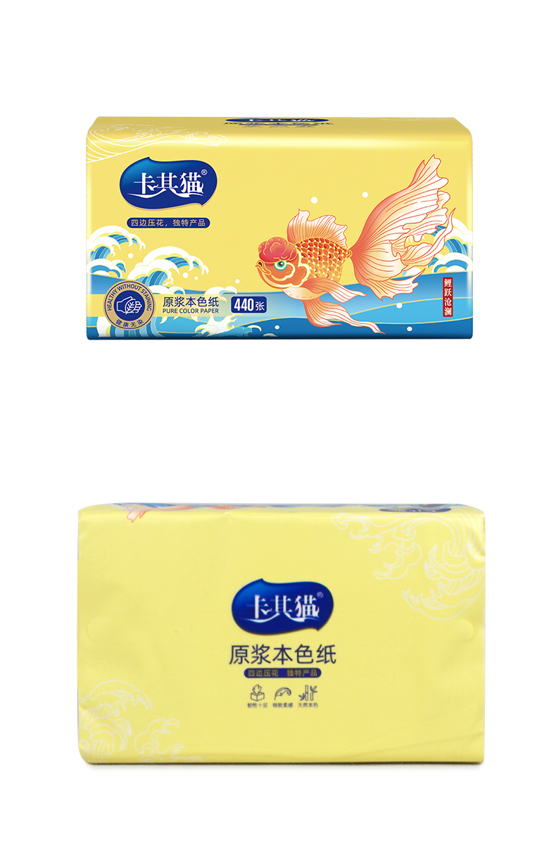 卡其猫纸巾本色抽纸竹浆面巾纸鲤跃沧澜餐巾纸440张 10包