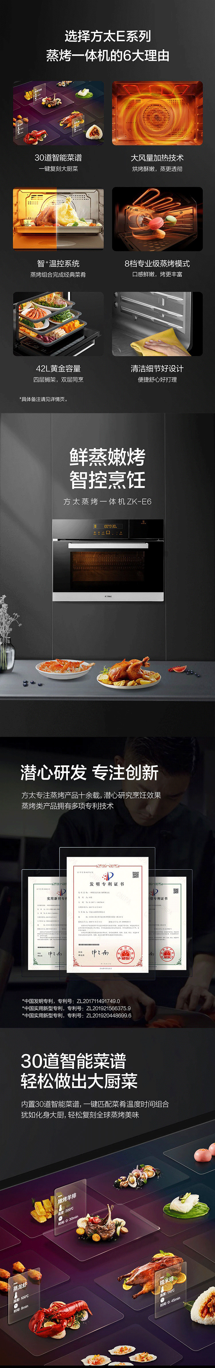 方太蒸烤箱一体嵌入式烤箱家用蒸烤一体E烘焙8电蒸箱烤箱嵌入式一体蒸烤2二合一旗舰ZK-E6