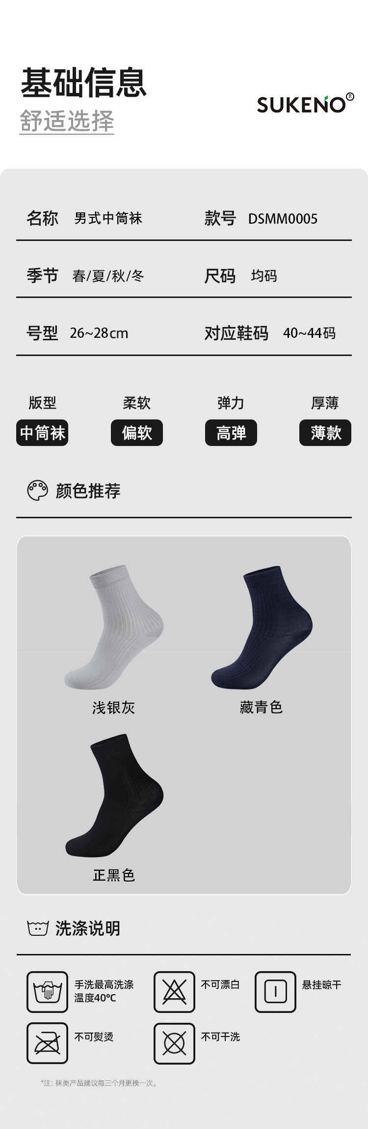 SUKENO夏季男士中筒袜透气耐磨防滑袜子父亲节好物