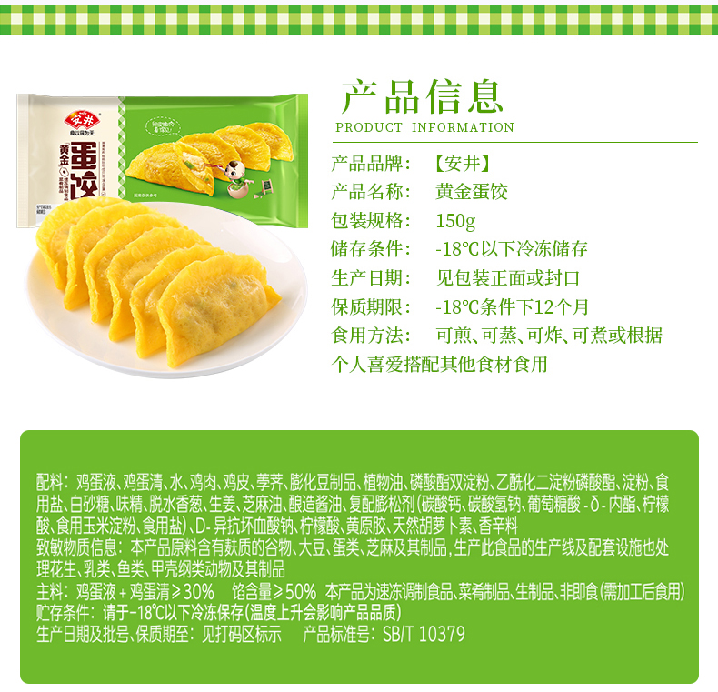 【限自提】安井黄金蛋饺火锅饺子150g/3袋