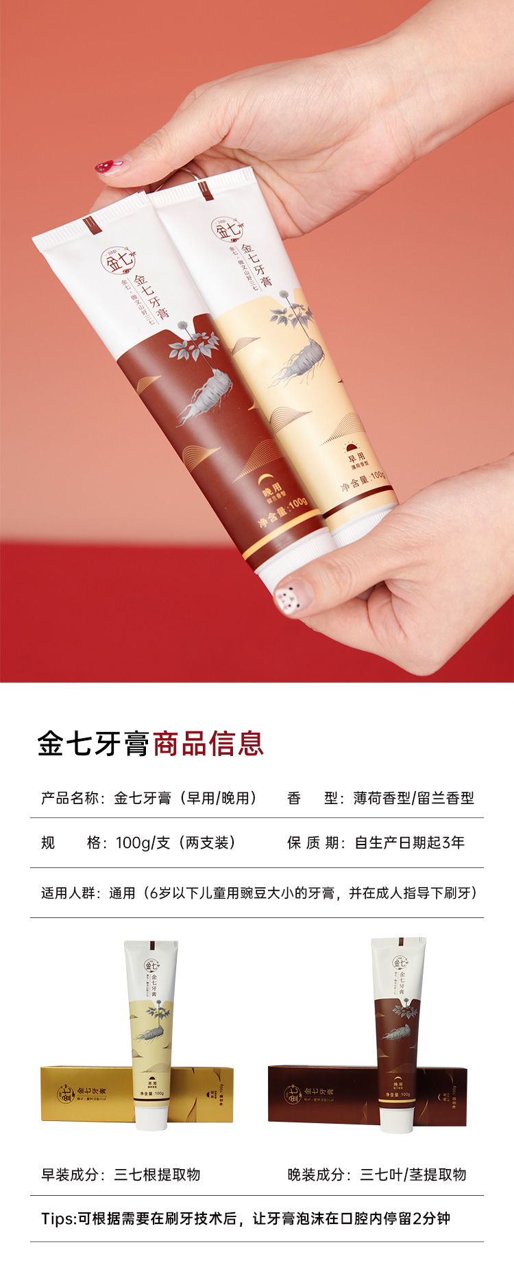 金七三七早晚牙膏两支装 改善牙龈出血上火红肿 护理口臭 早用牙膏100克+晚用牙膏100克共计两支