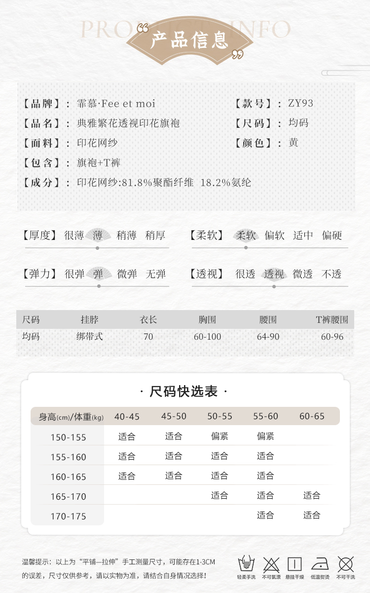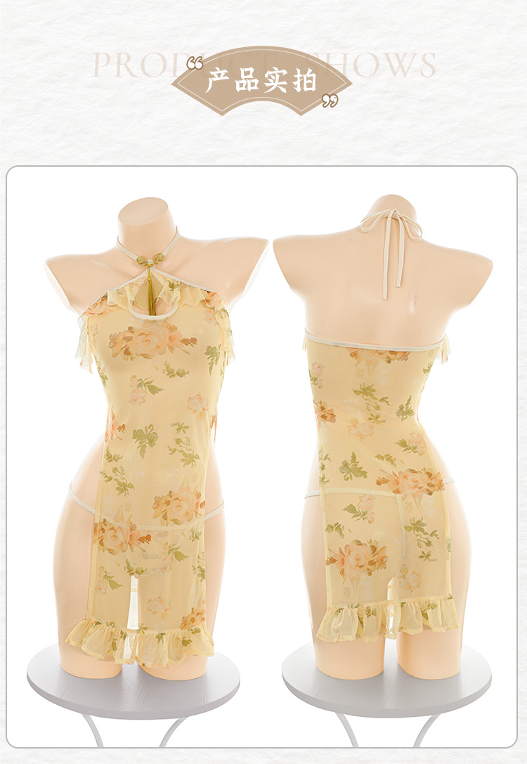 【情趣内衣】霏慕 典雅繁花透视印花旗袍ZY93