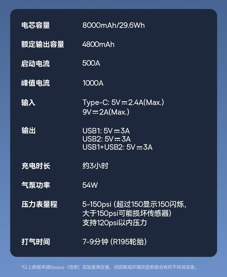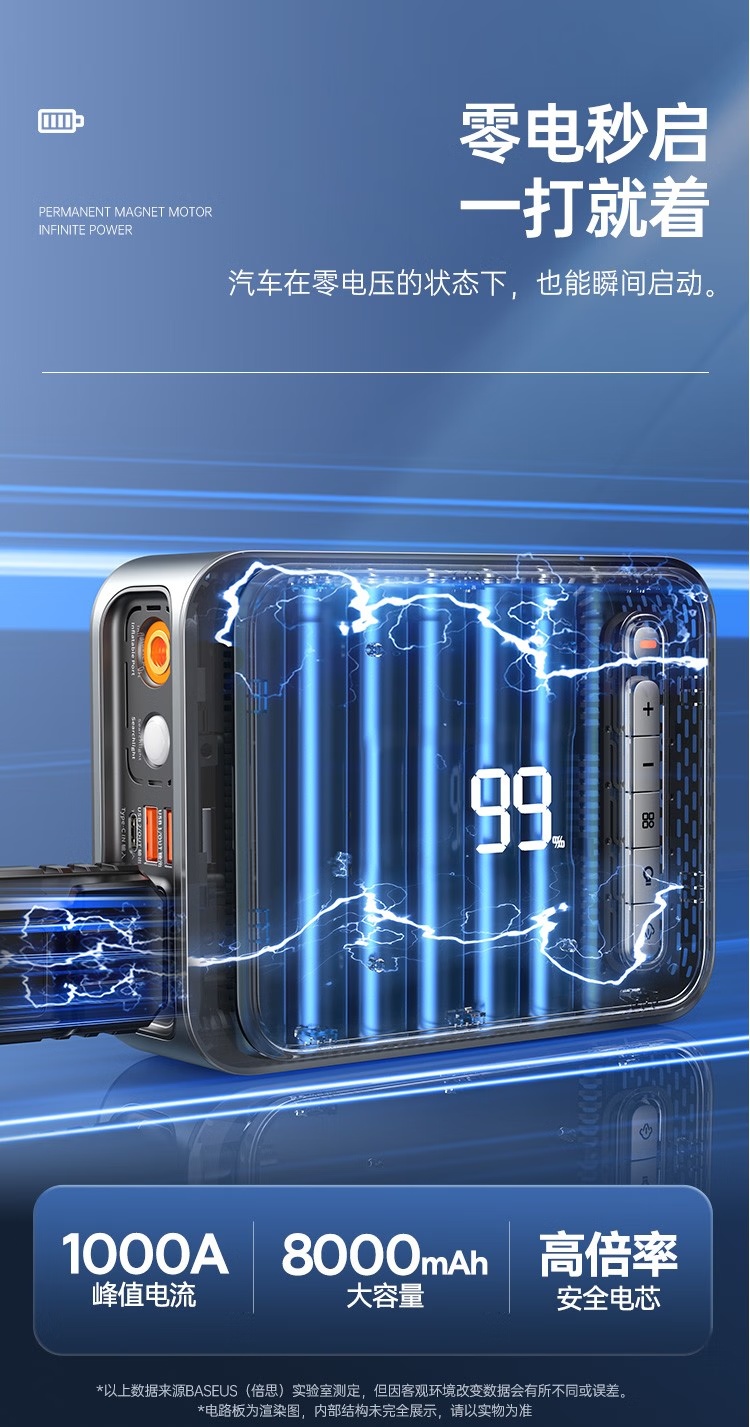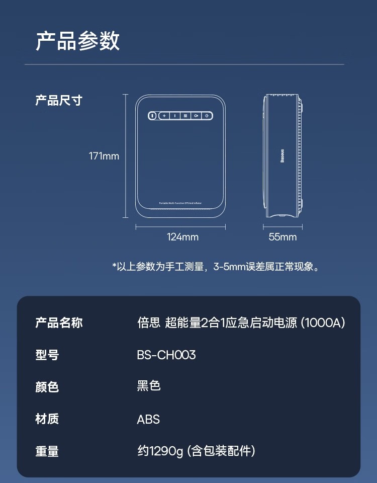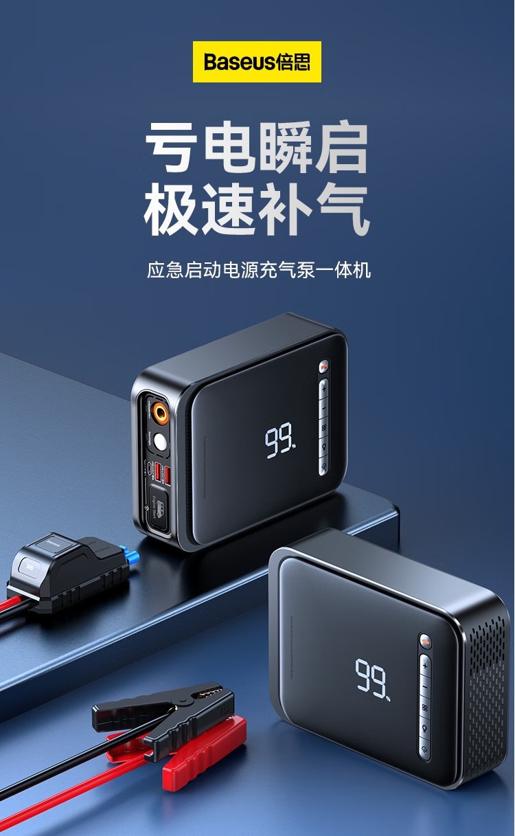 BASEUS/倍思 汽车应急启动电源充气泵一体机户外电源搭电宝汽车电瓶充电器8000mAh BS-CHO03
