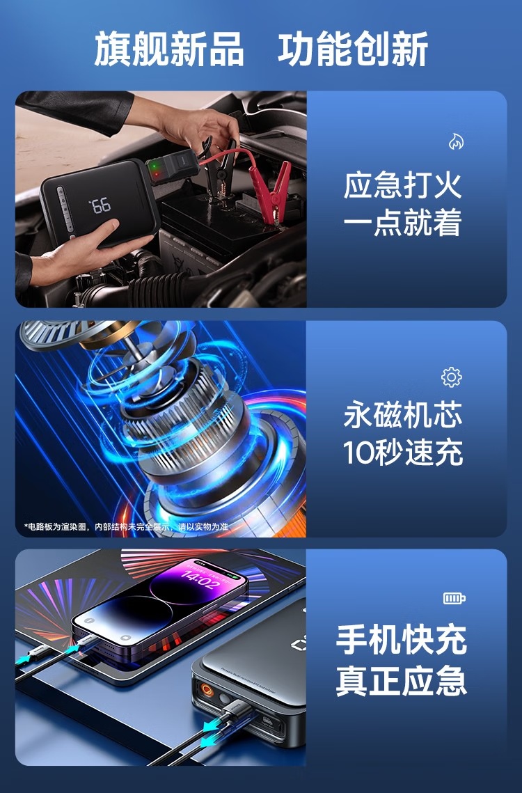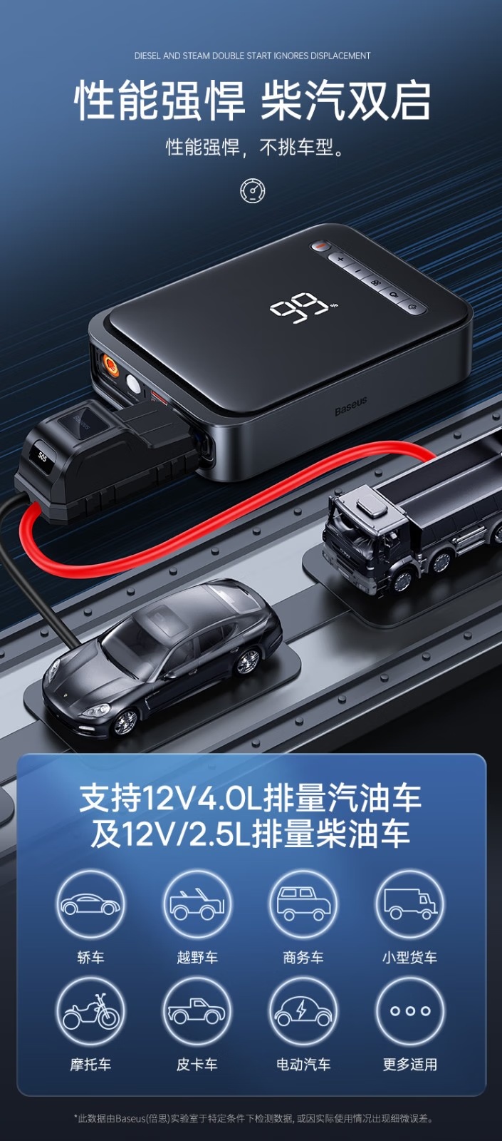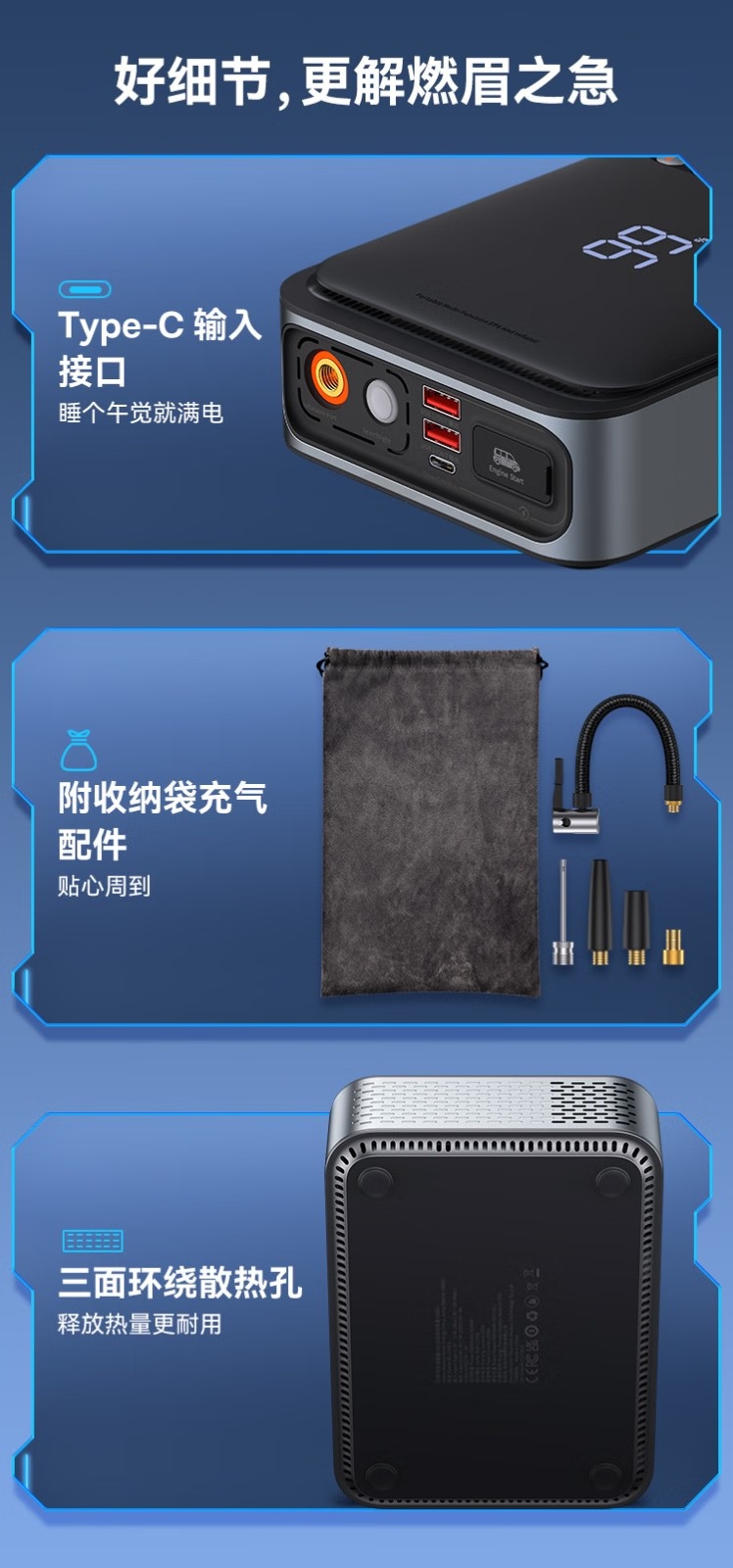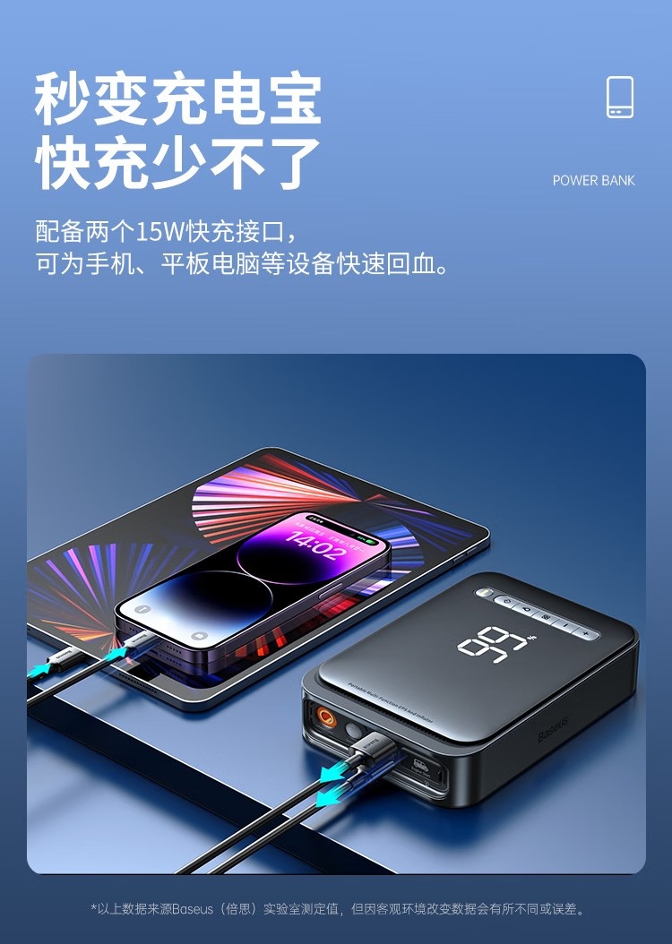 BASEUS/倍思 汽车应急启动电源充气泵一体机户外电源搭电宝汽车电瓶充电器8000mAh BS-CHO03