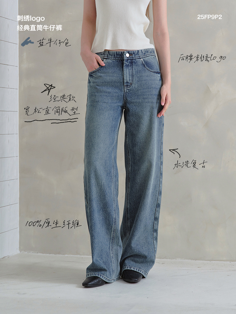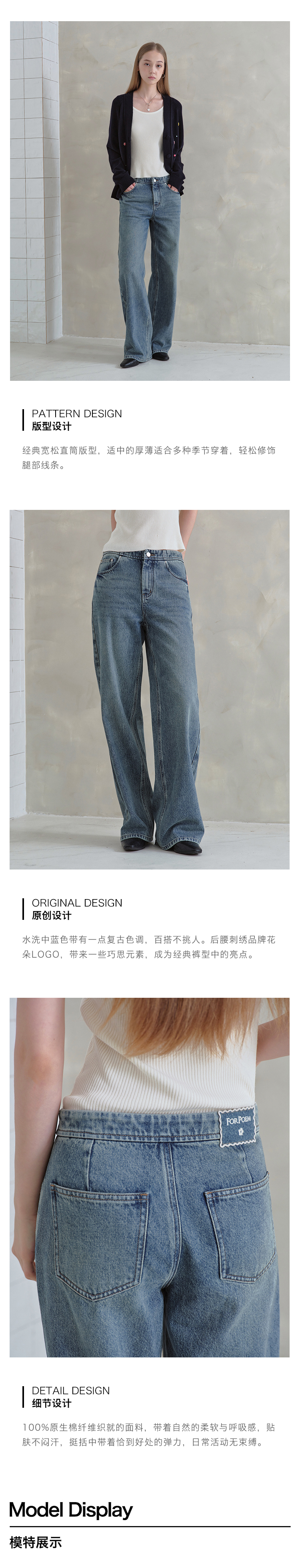 ForPoem 现货 25/FW原创设计刺绣logo贴布经典直筒复古休闲牛仔裤